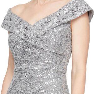 Alex Evenings Women’s Off The Shoulder Fit and Flare Dress, Lace and Sequined Elegance for Mother of The Bride Or Groom