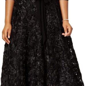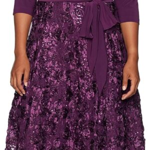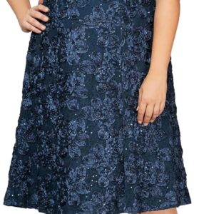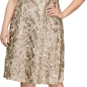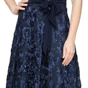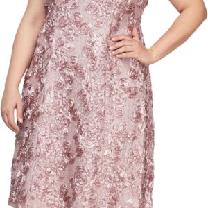 Alex Evenings Women’s Plus Size Tea Length Dress with Rosette Detail