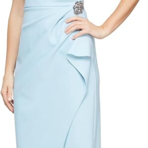 Alex Evenings Women’s Slimming Long Side Ruched Mother of The Bride Dress W\/Cascade Ruffle Skirt (Petite and Regular Sizes)