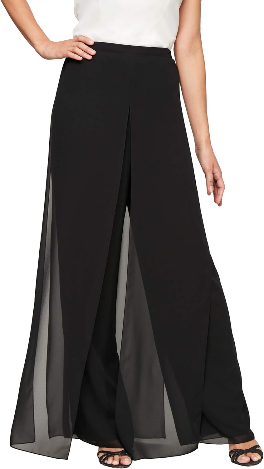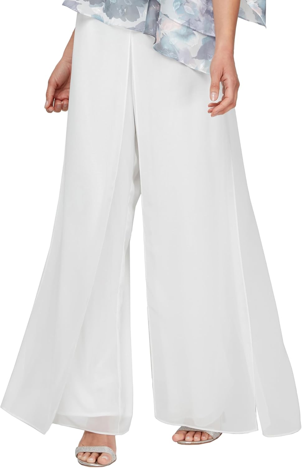 Alex Evenings Women’s Wide Leg Chiffon Dress Pant for Mother of The Bride, Elegant Party Outfit (Petite and Regular Sizes)