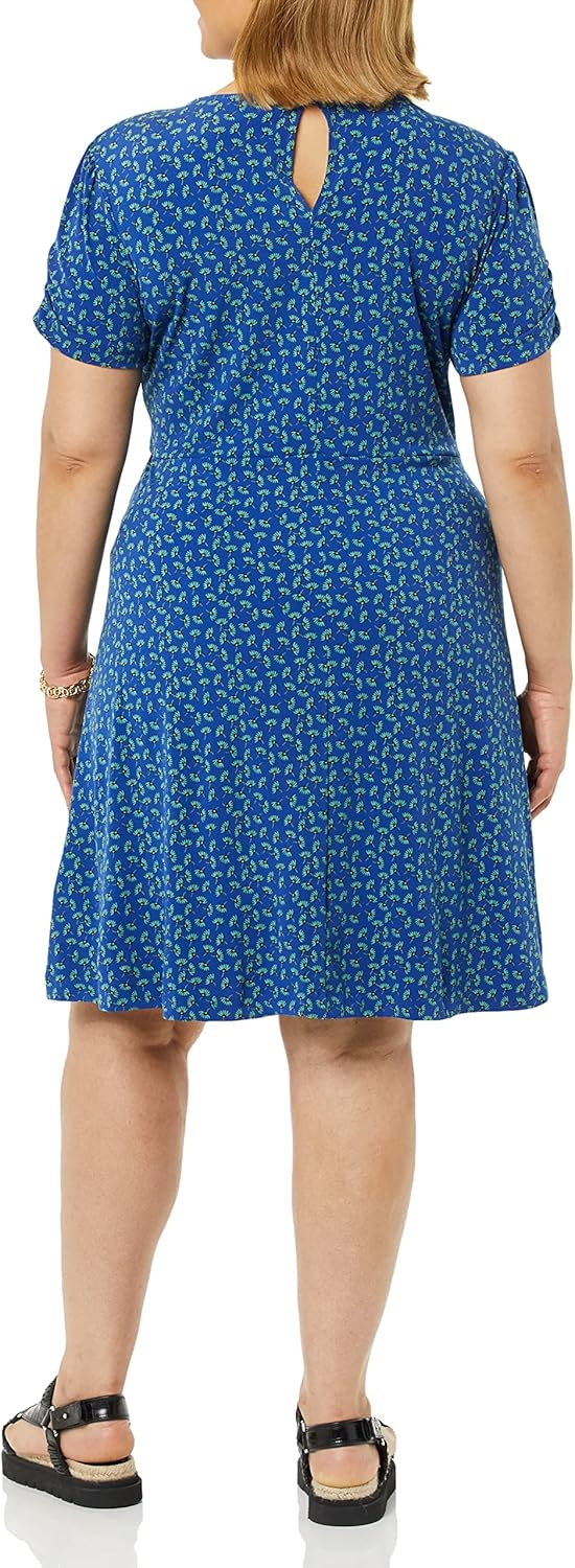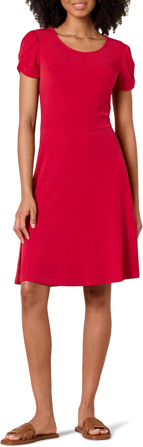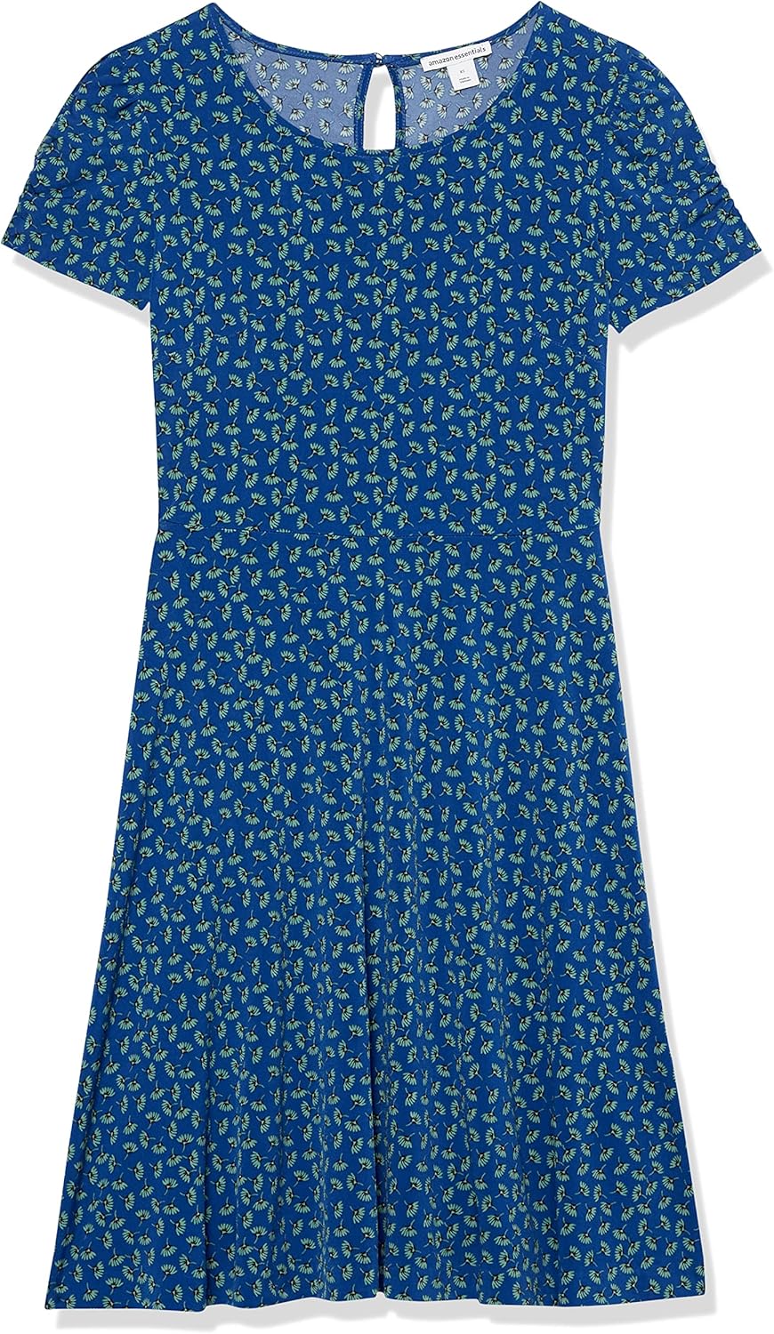 Amazon Essentials Women’s Gathered Short Sleeve Crew Neck A-line Dress (Available in Plus Size)