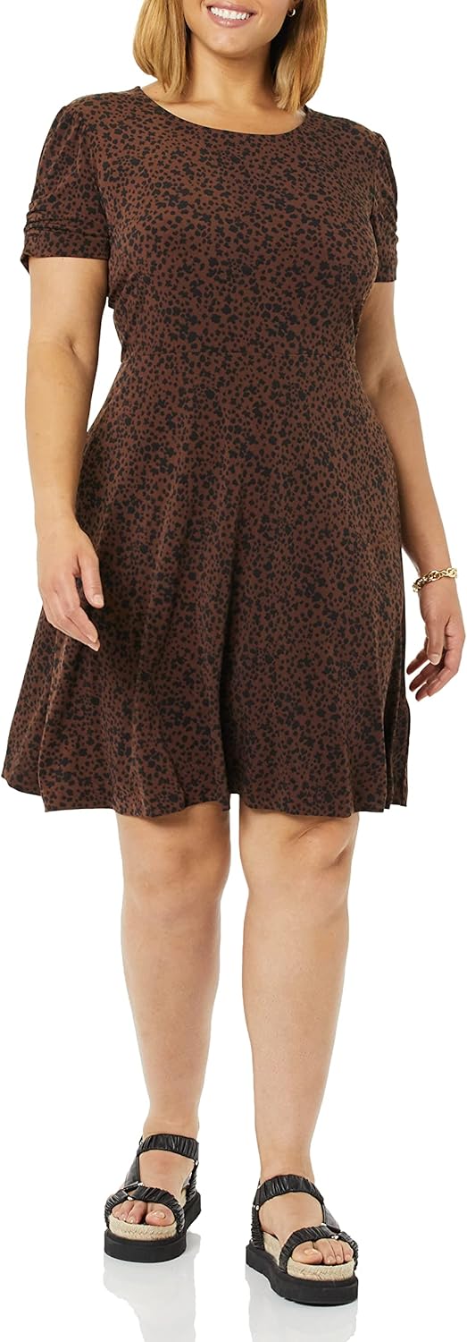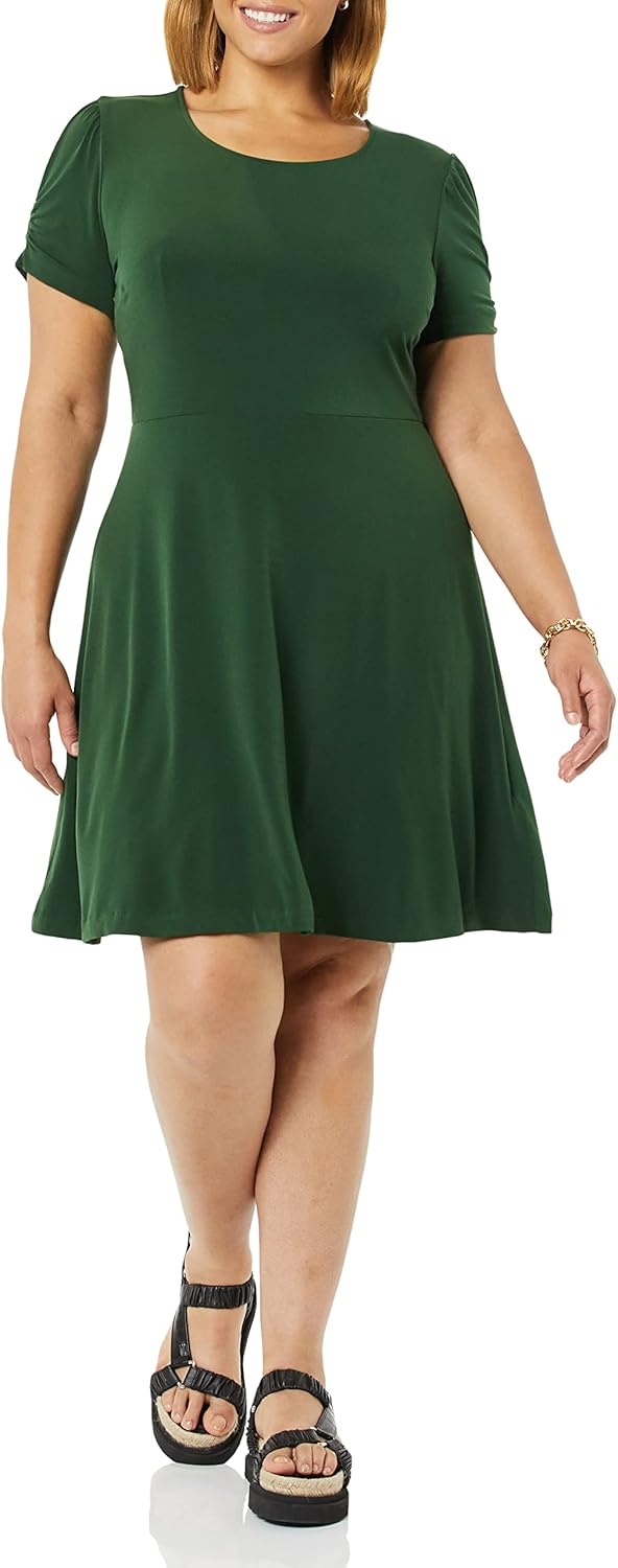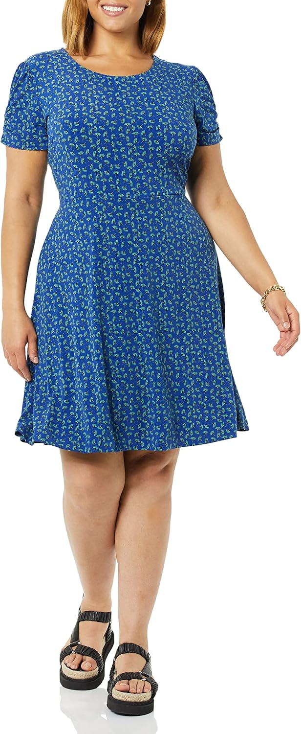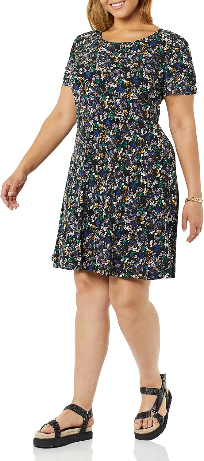 Amazon Essentials Women’s Gathered Short Sleeve Crew Neck A-line Dress (Available in Plus Size)