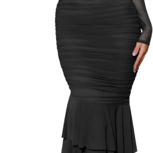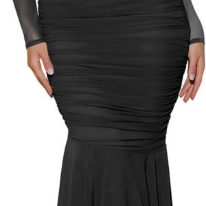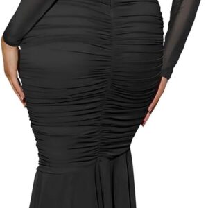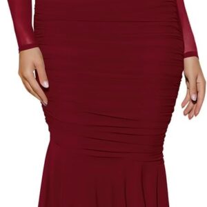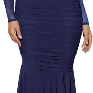 Atizon Women’s Ruched Bodycon Long Sleeve Square Neck Wedding Guest Dress Formal Mermaid Evening Cocktail Party Maxi Dresses