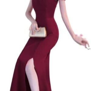 AUOGU Evening Gown Long Shoulder Dress Long Dress Dinner Dress Wedding Evening Dress