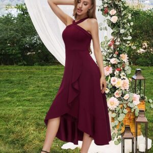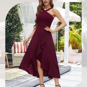 Bbonlinedress Halter Cocktail Women Dresses Prom Formal Wedding Bridesmaid Dress Ruffled Maxi Hi-Lo Evening Party 2025 Dress