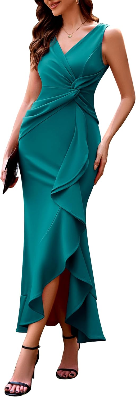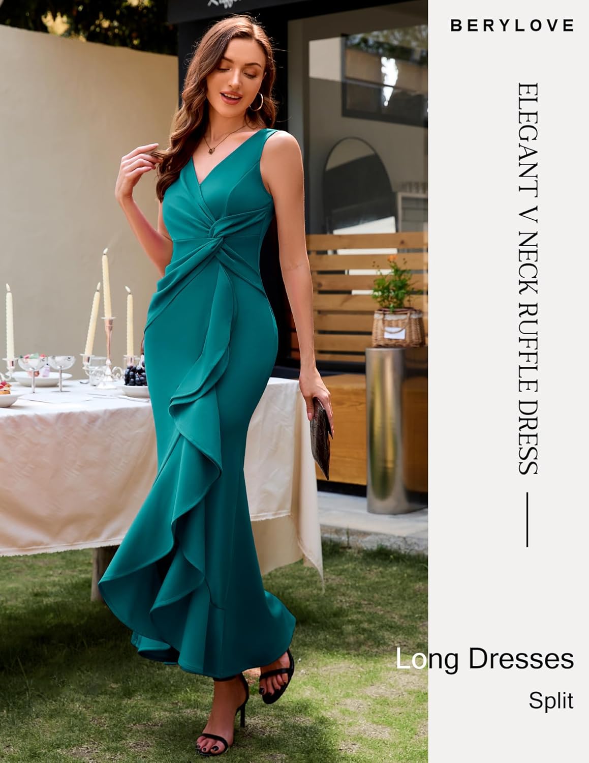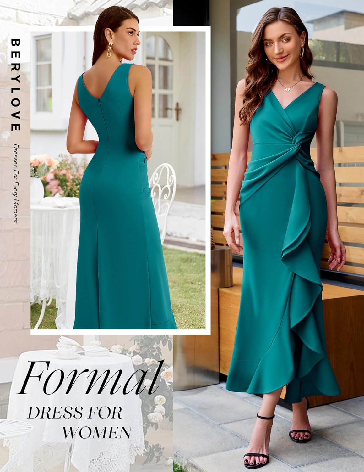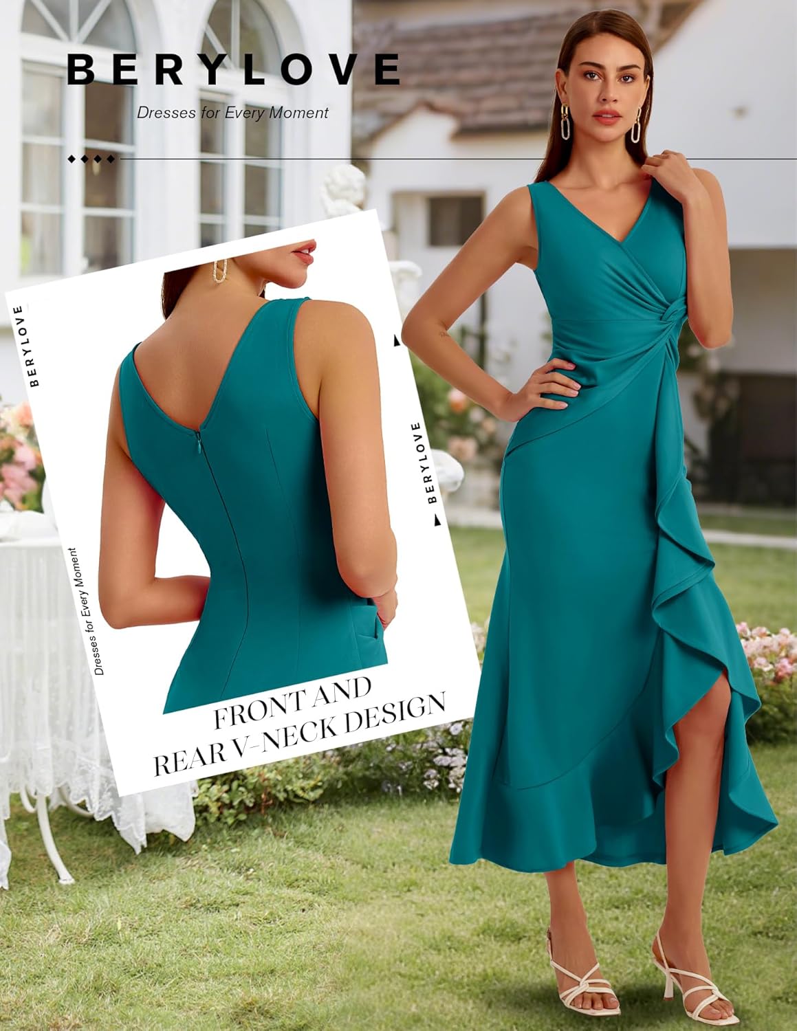 BeryLove Formal Wedding Guest Evening Midi Ruffle Dresses Cocktail Elegant Dress