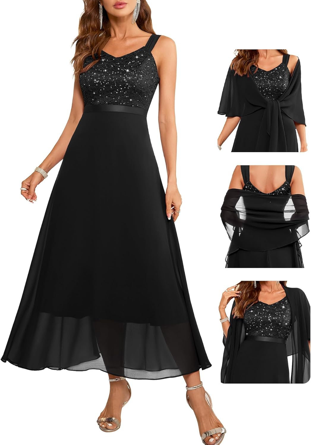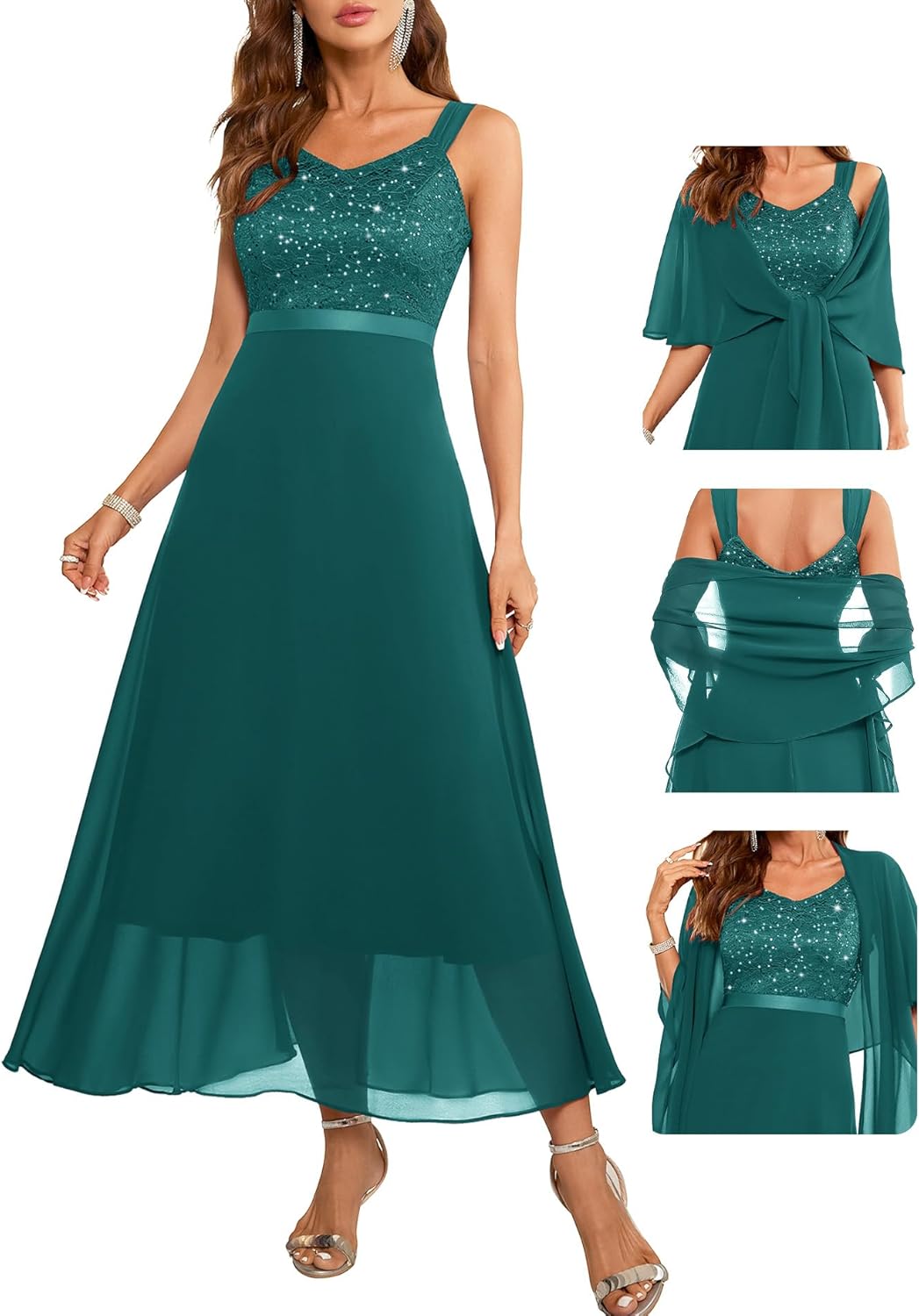 BeryLove Formal Wedding Guest Sequin Mother of The Bride Dress Evening Dresses