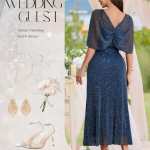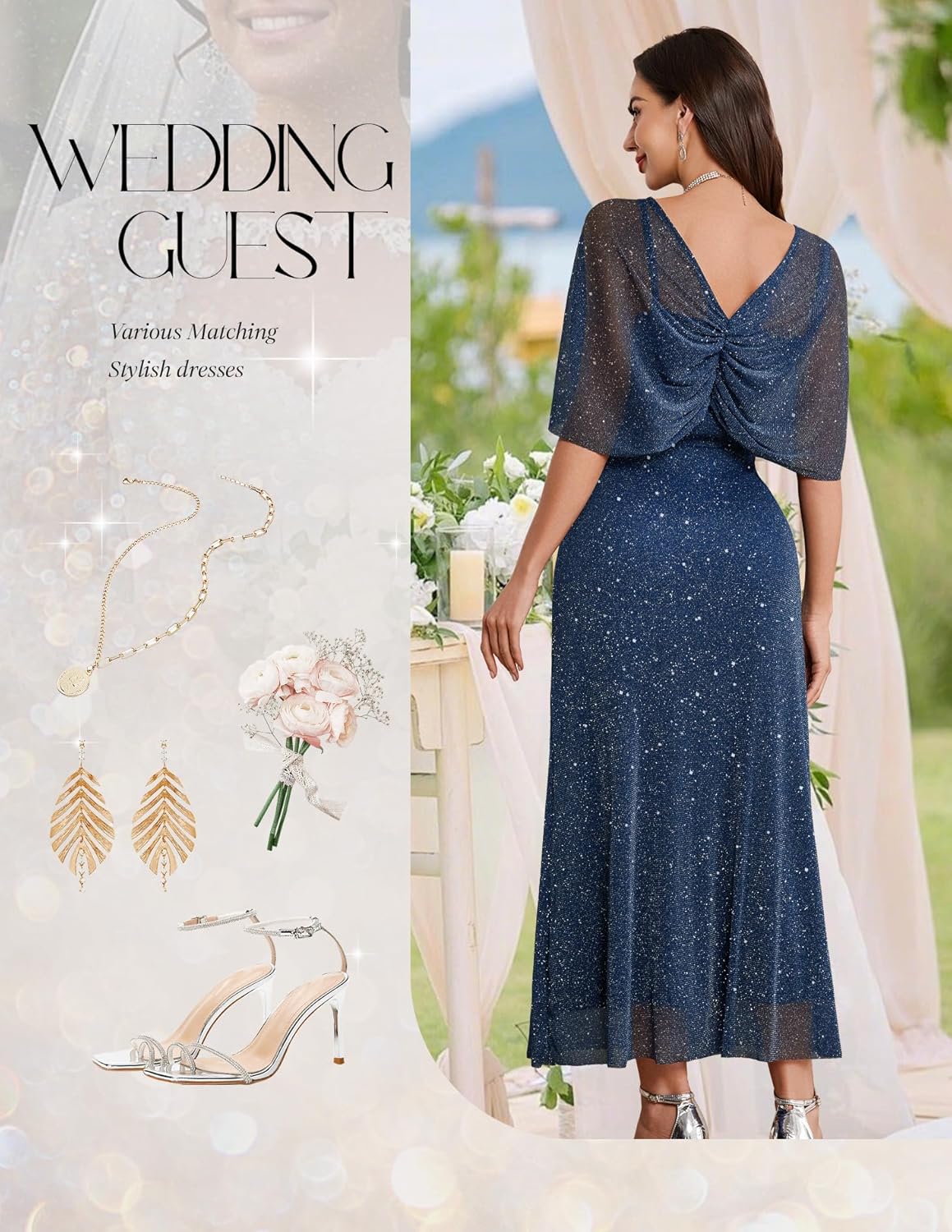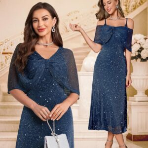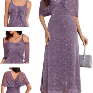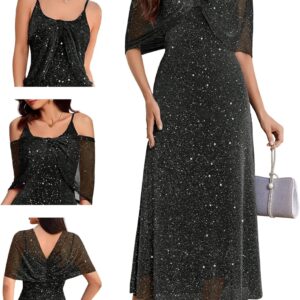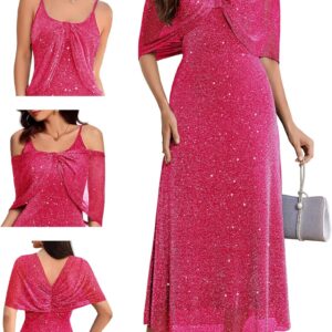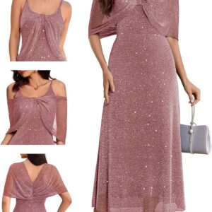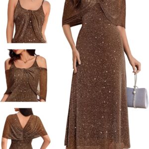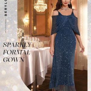 BeryLove Women Sequin Formal Party Dress Cocktail Evening Gown Wedding Dresses with Shawl