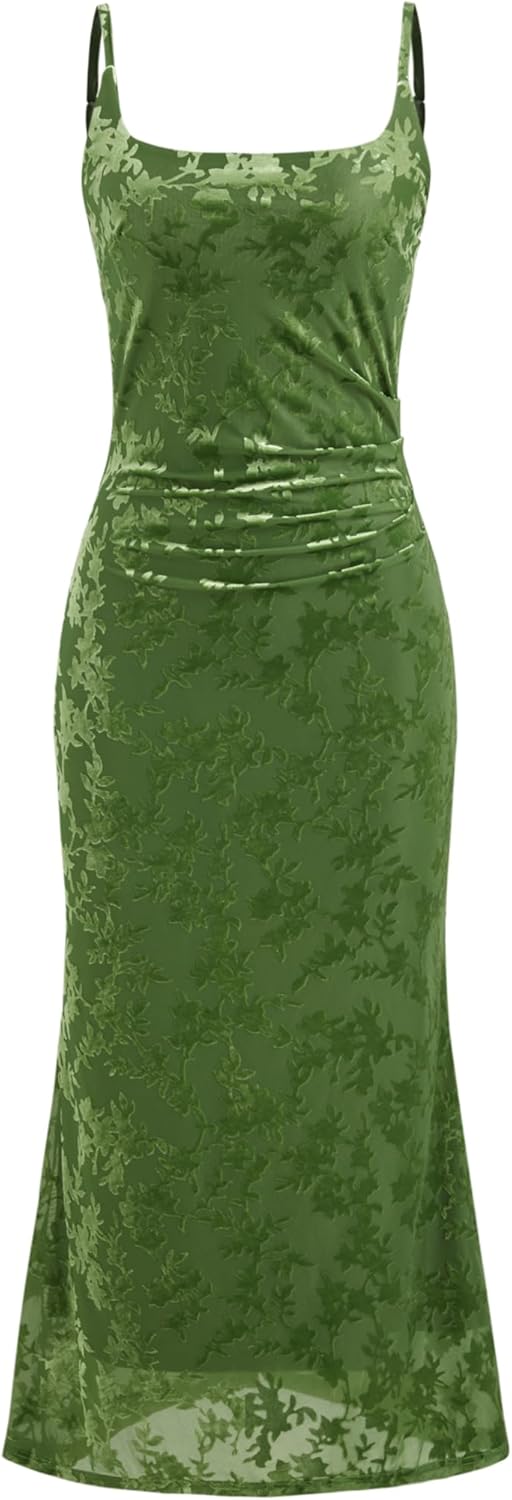 CIDER Dress for Women Floral Ruched Maxi Dress Square Neck Slim Fit Holiday Party Elegant Evening
