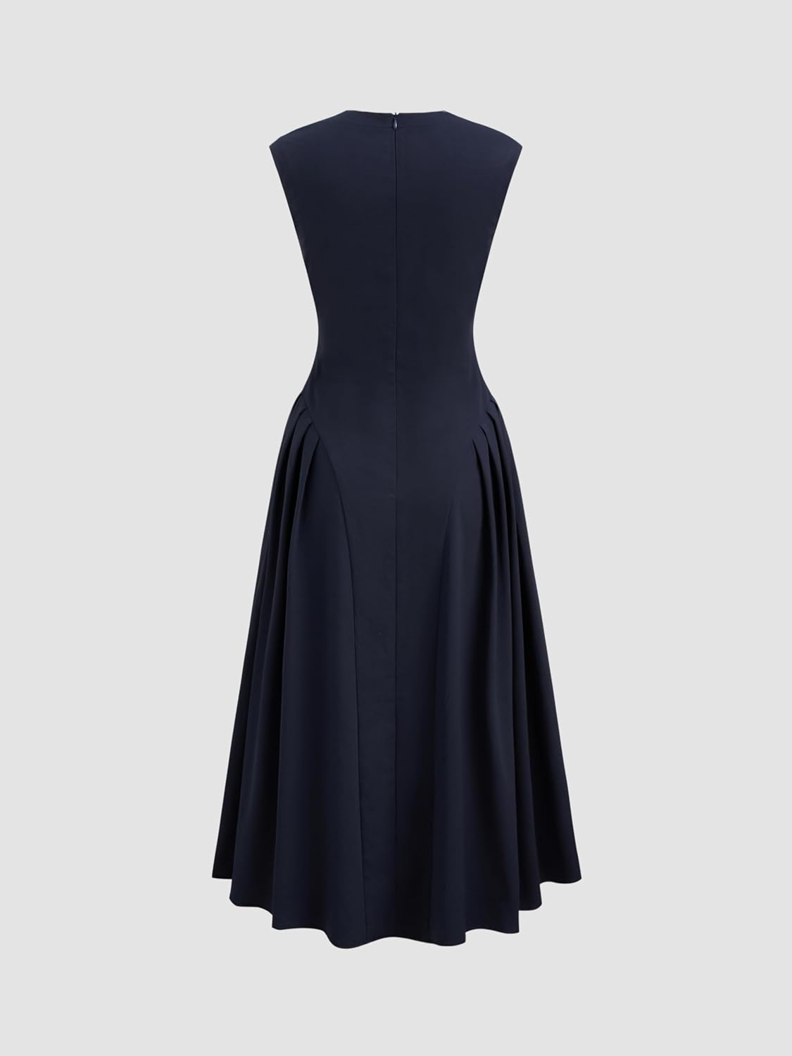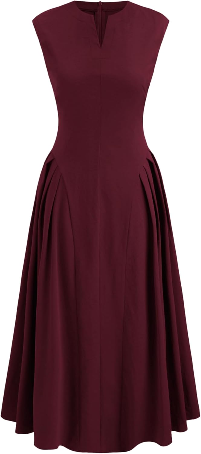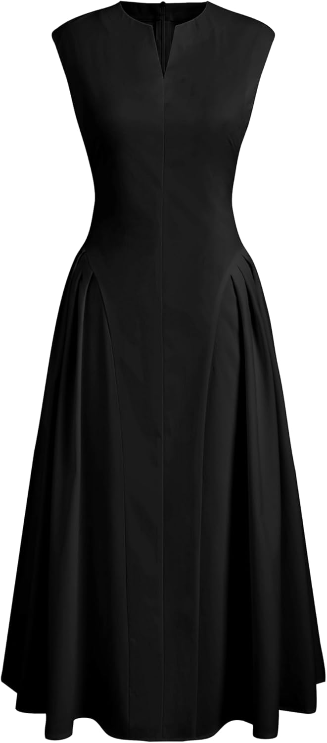 CIDER Maxi Dress for Women Sleeveless High Waist Solid Pleated V Neck Vacation Elegant Party Evening Dresses