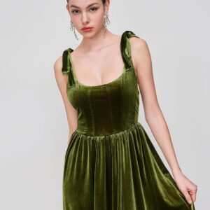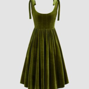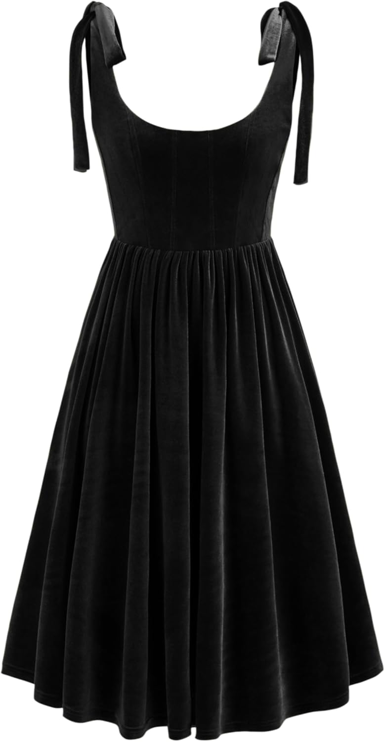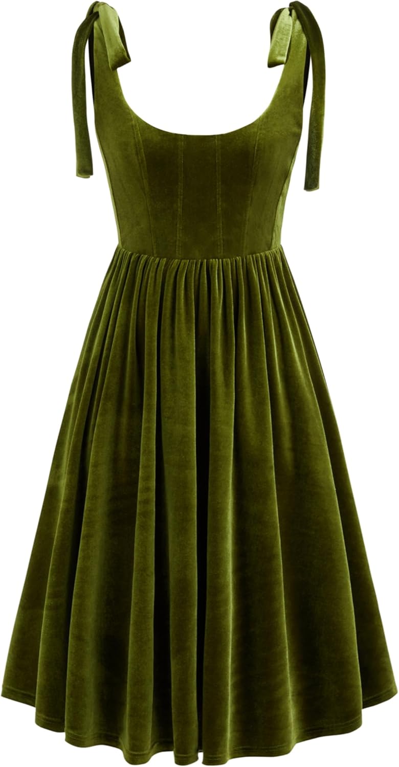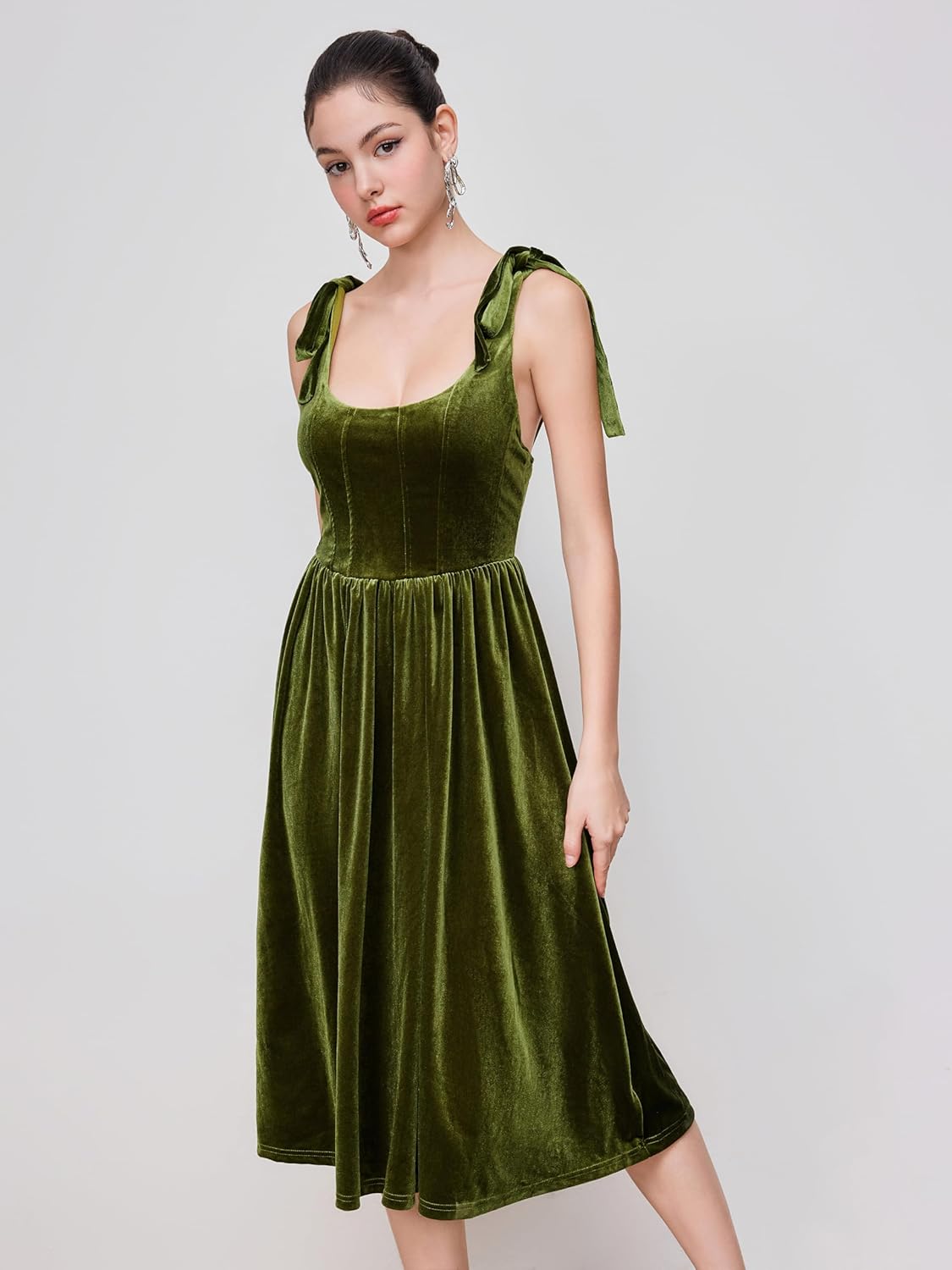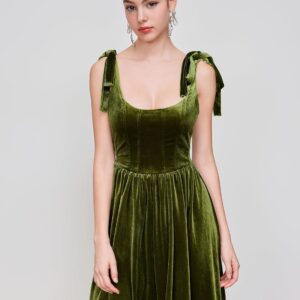 CIDER Velvet Dress for Women Midi Solid Knot Scoop Neckline Sleeveless Cocktail Party Evening Dress