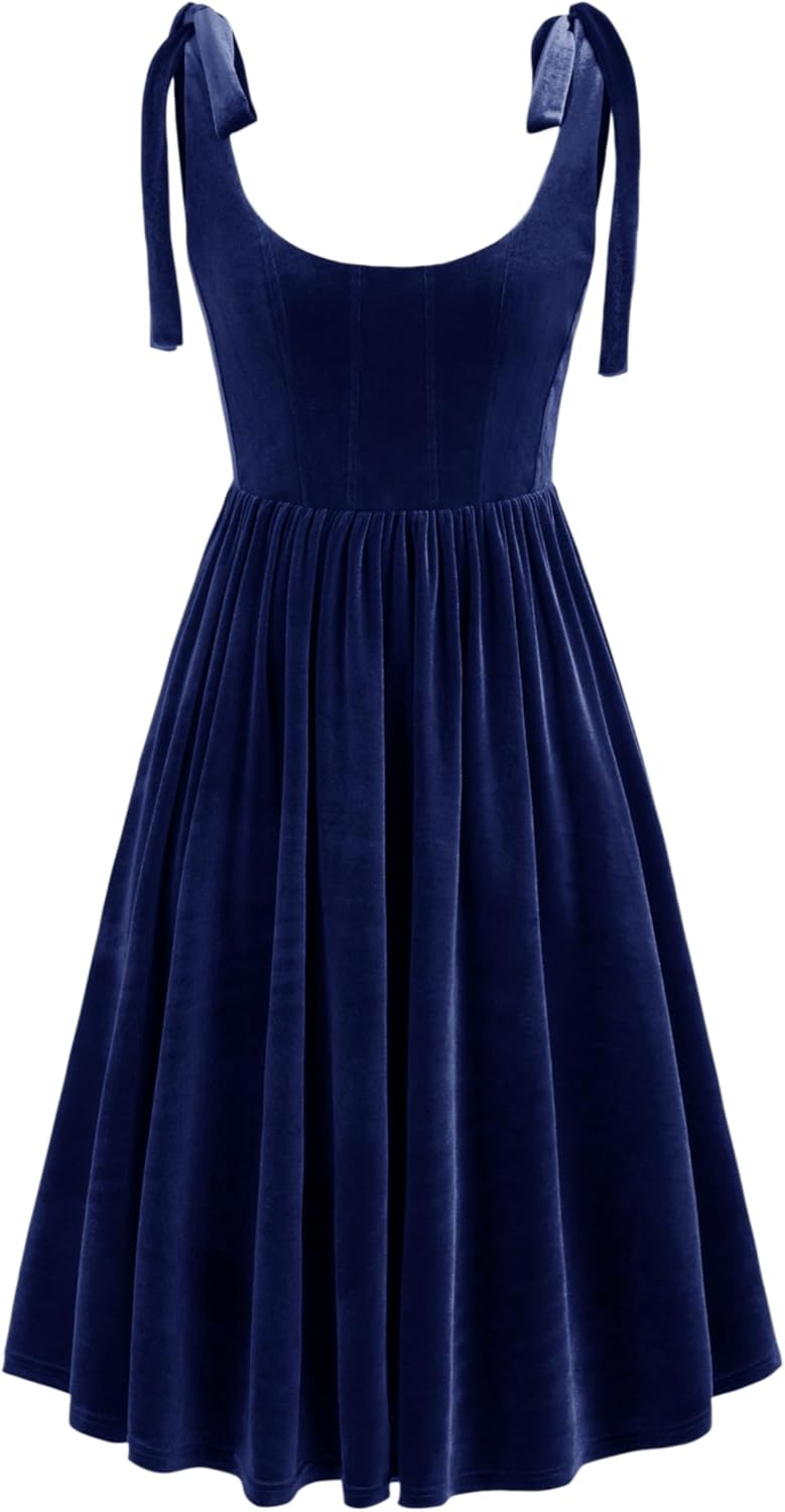 CIDER Velvet Dress for Women Midi Solid Knot Scoop Neckline Sleeveless Cocktail Party Evening Dress