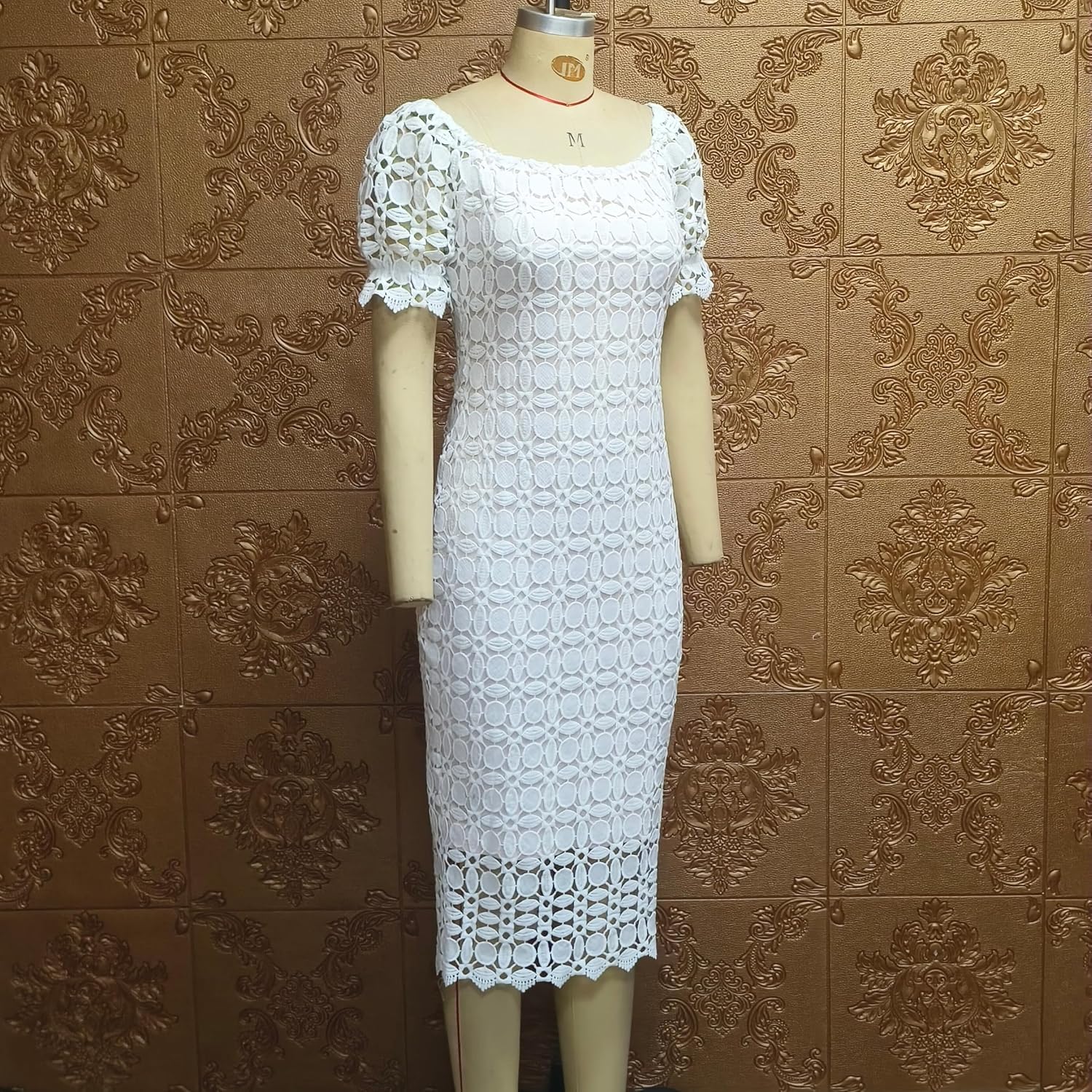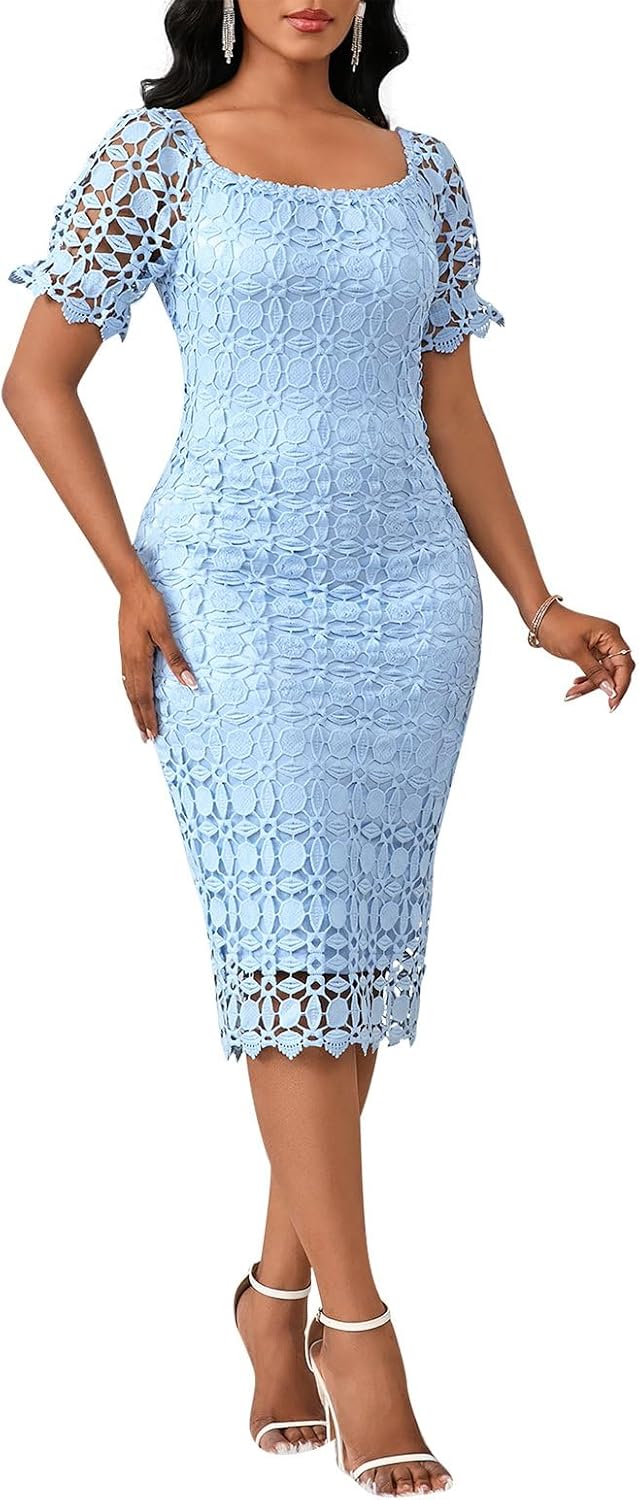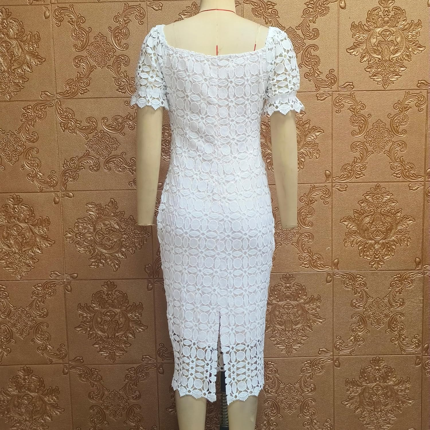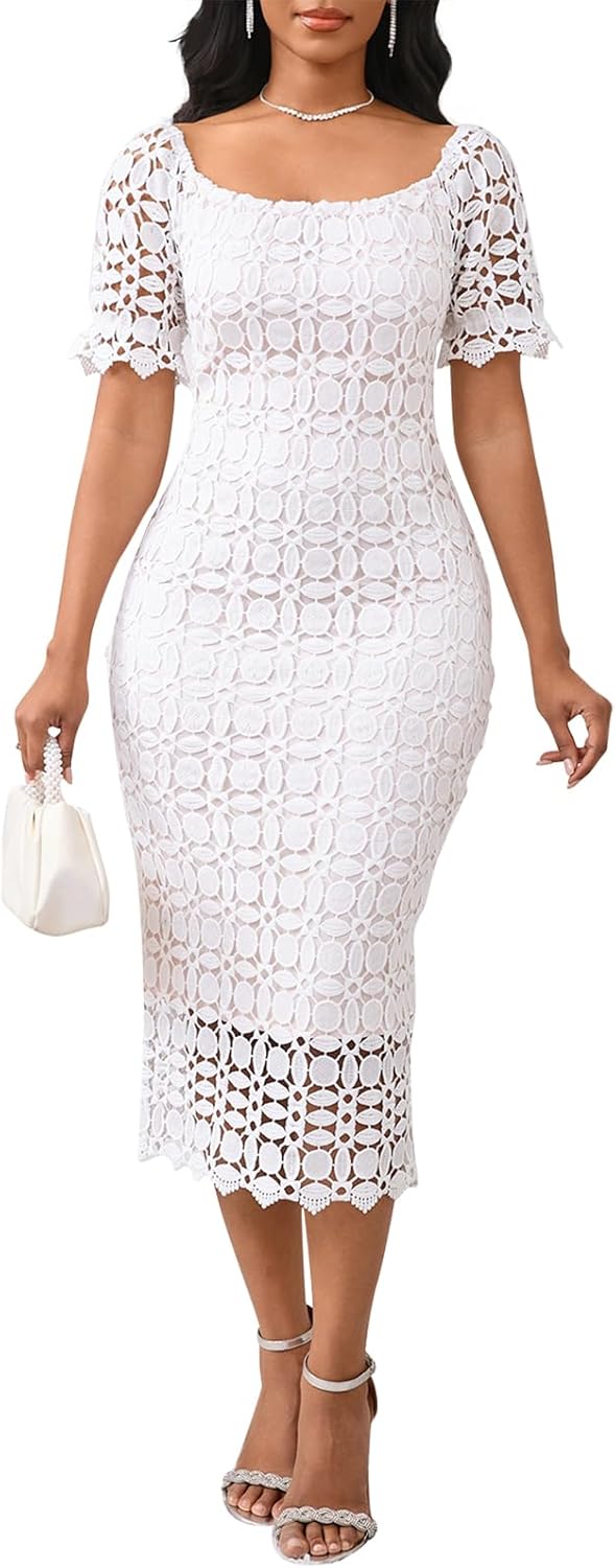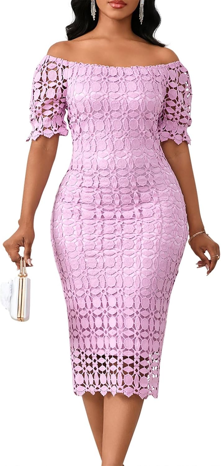Cololura Elegant Sexy Floral Lace Short Sleeve Off Shoulder Evening Gown Party Formal Bodycon Midi Dress