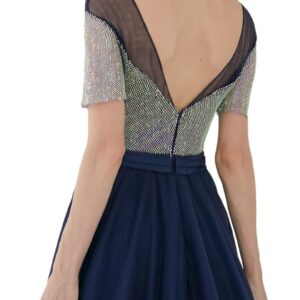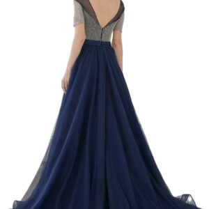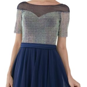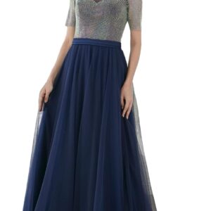 Customized high-end Women’s 3/4 Sleeve Sweetheart Neckline A Diamond Evening Dress Blue Black