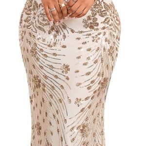 dasmzper Women Sexy Sequin Off Shoulder Ruffle Short Sleeve Bodycon Mermaid Party Formal Evening Maxi Dress