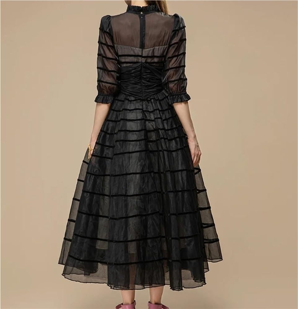 A-Line Dress Lace Design High Waist Wrap Dress Perfect Waist Curve Flowing Long Skirt