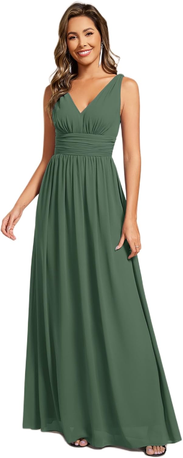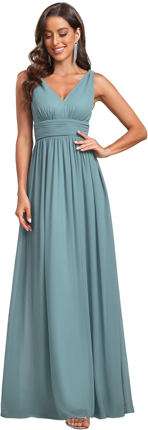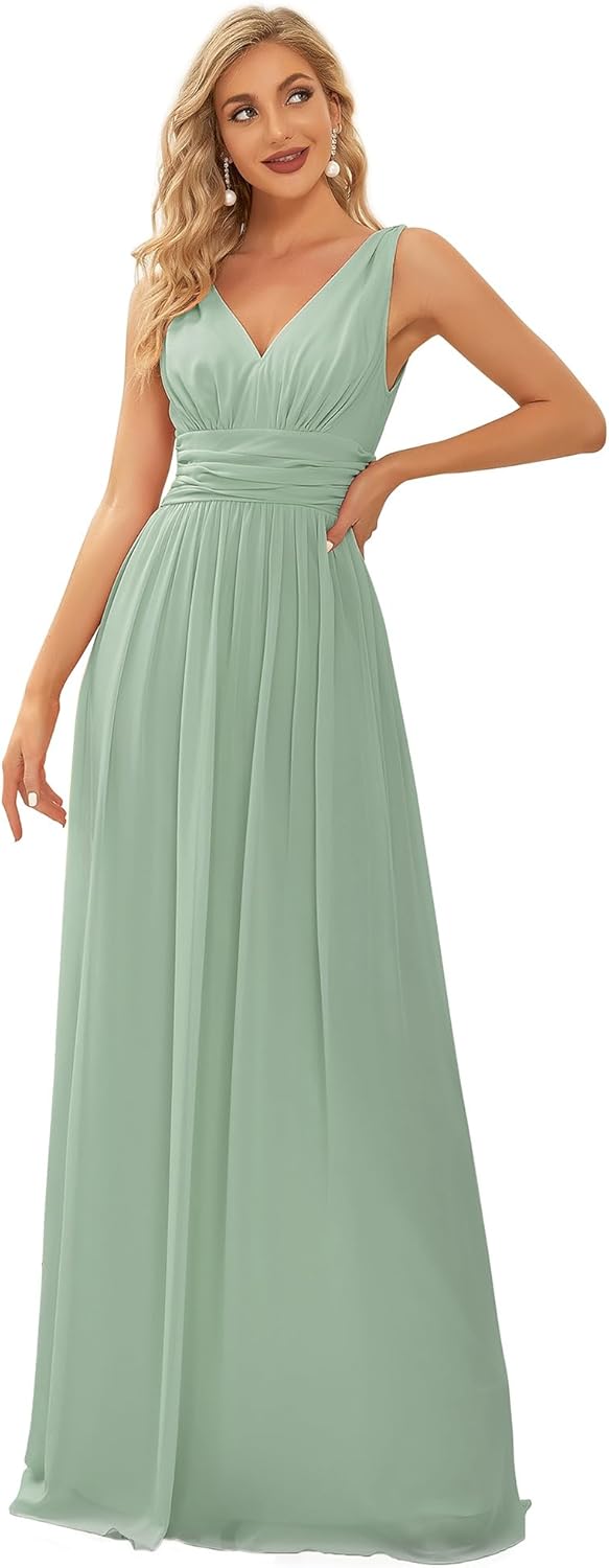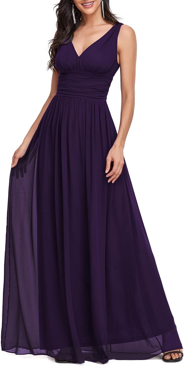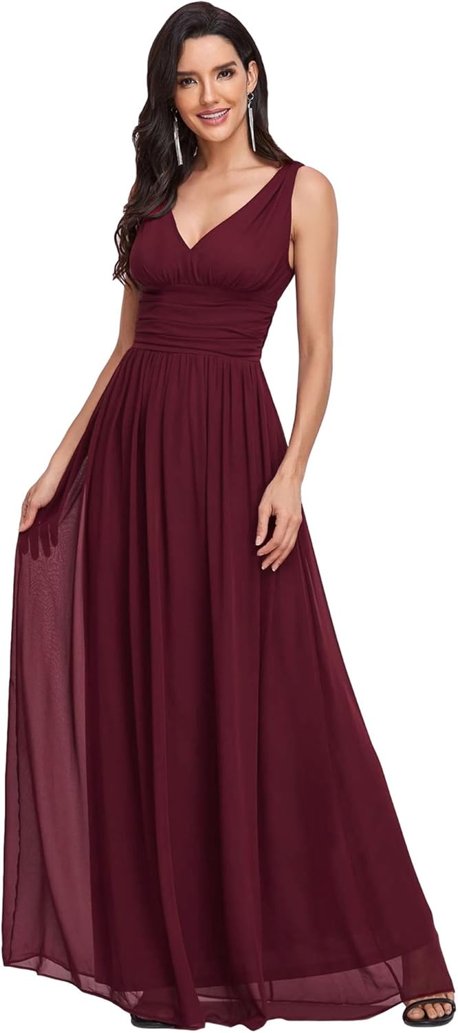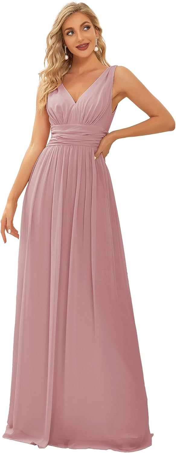 Ever-Pretty Womens Bridesmaid Dress V-Neck Sleeveless A Line Chiffon Floor Length Formal Dress 09016