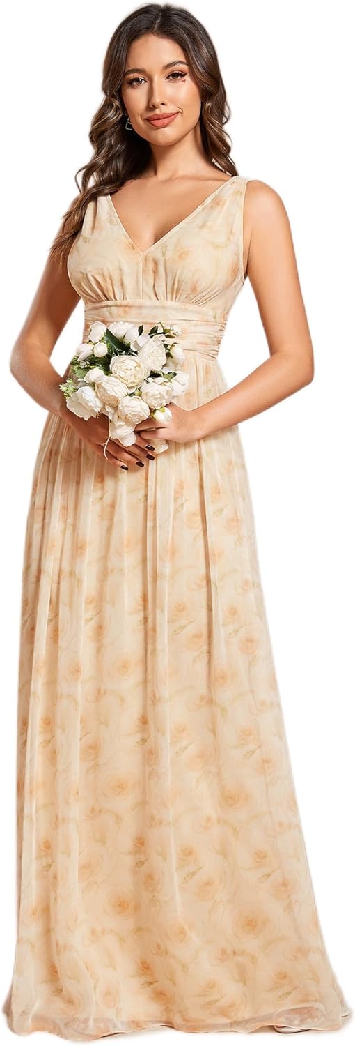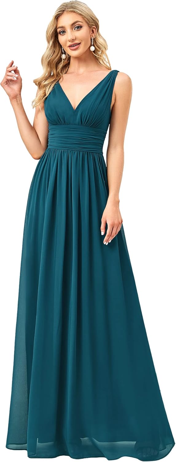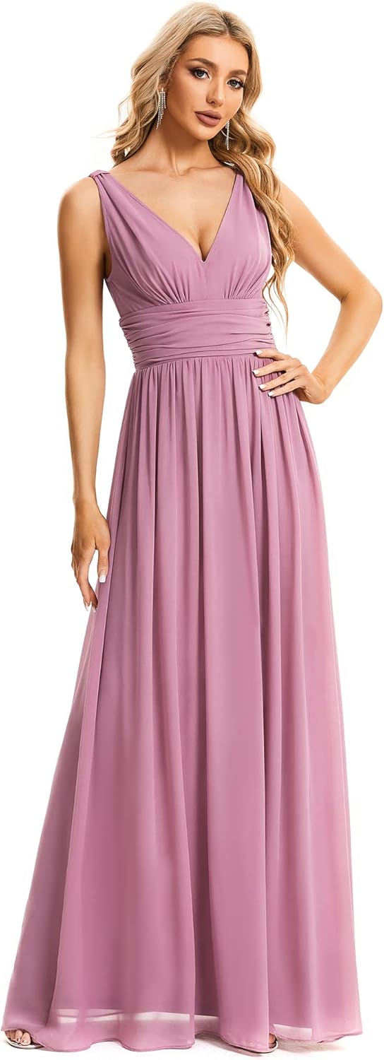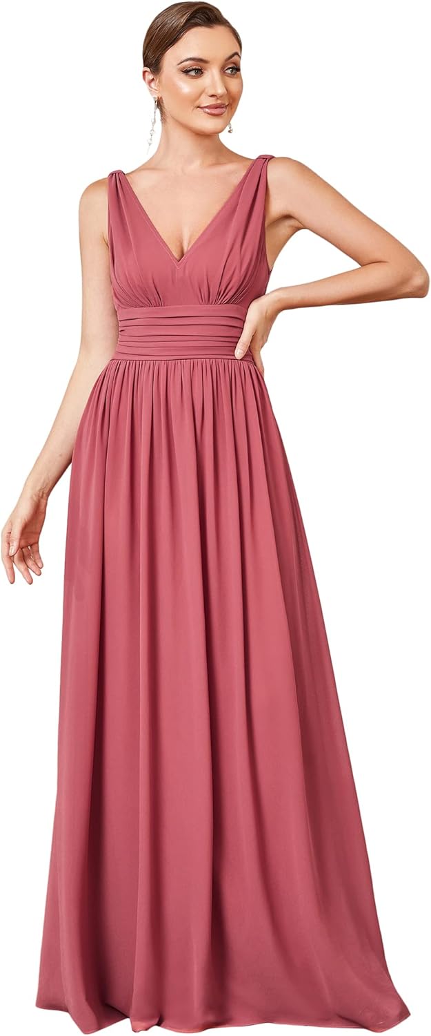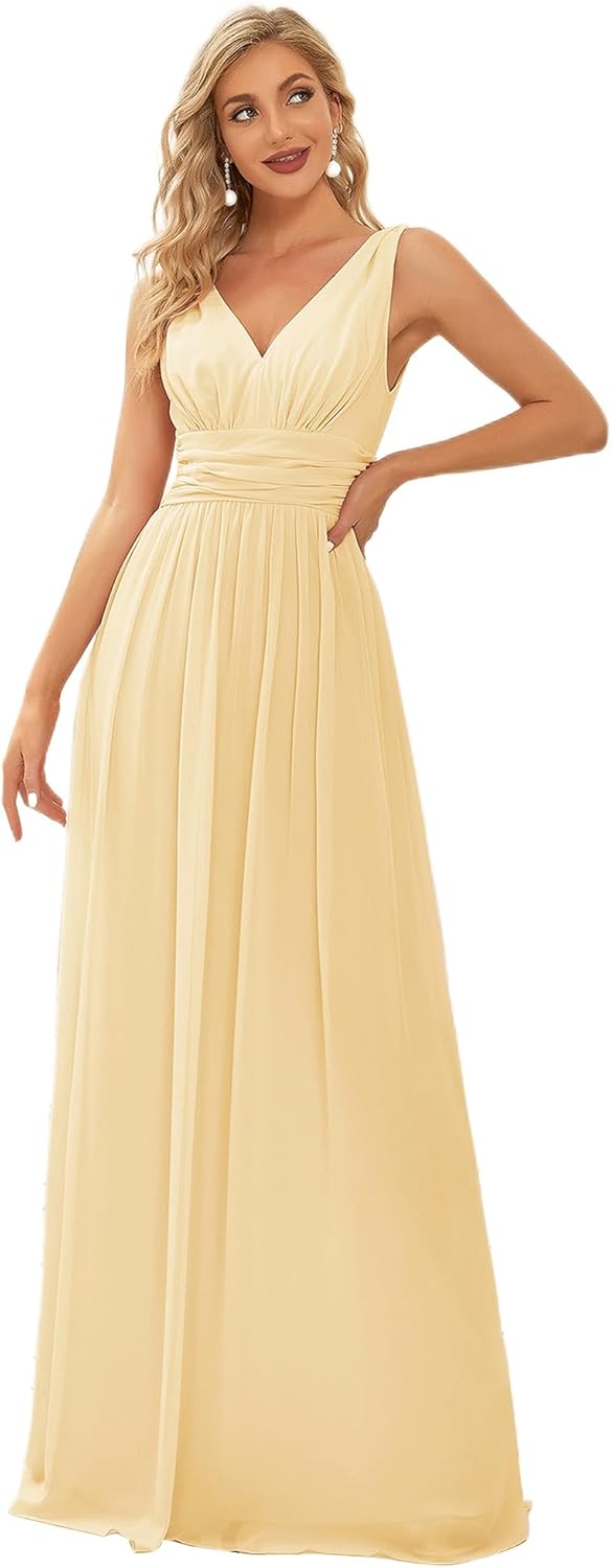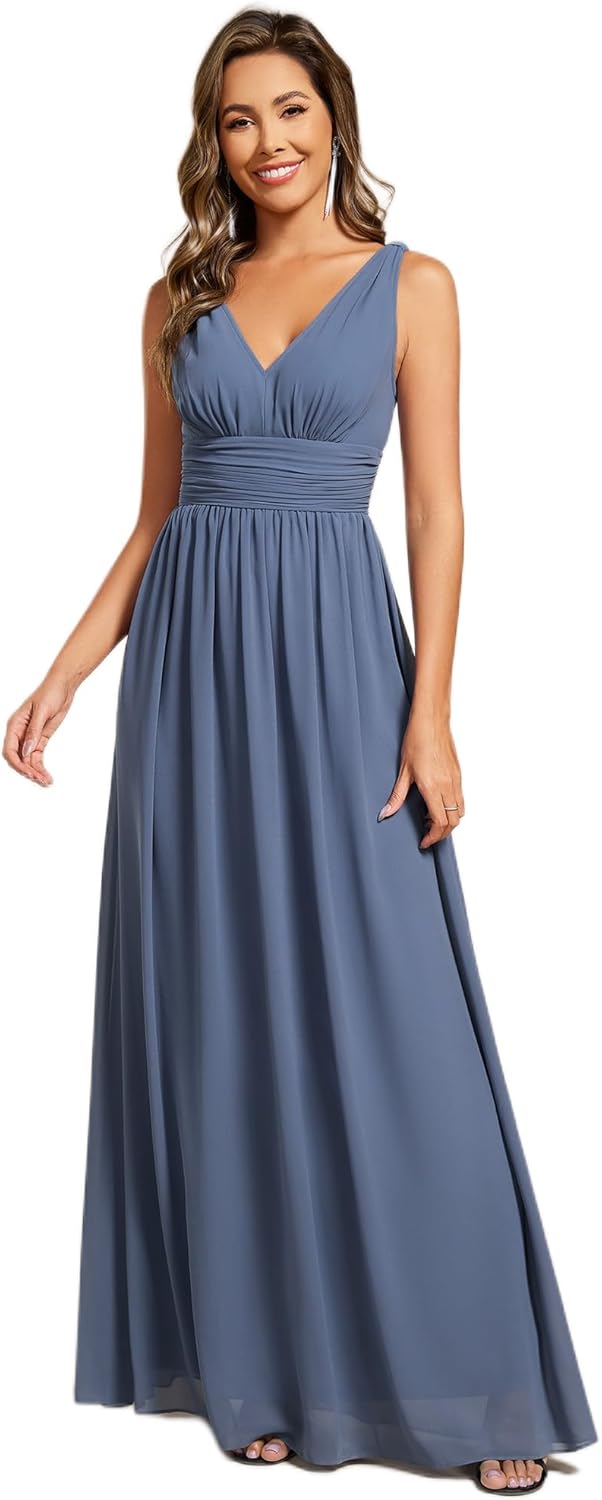 Ever-Pretty Womens Bridesmaid Dress V-Neck Sleeveless A Line Chiffon Floor Length Formal Dress 09016