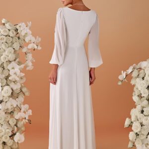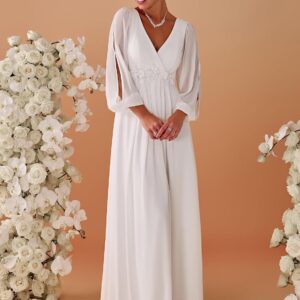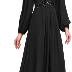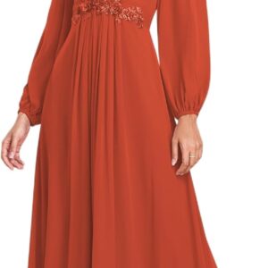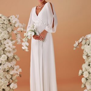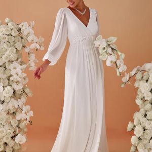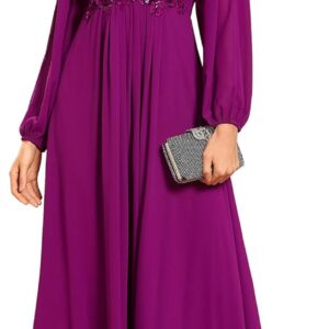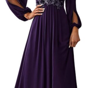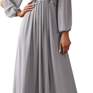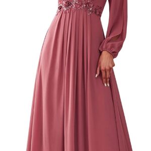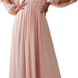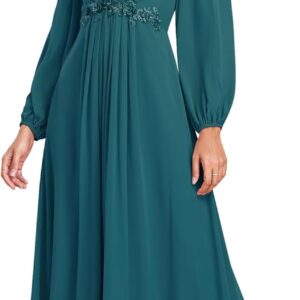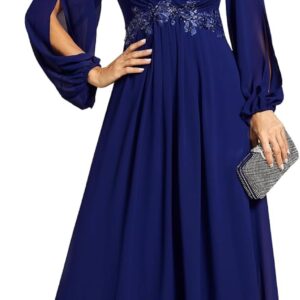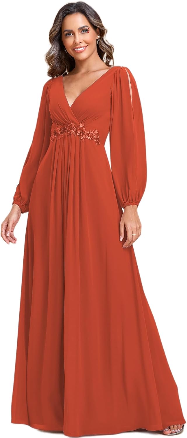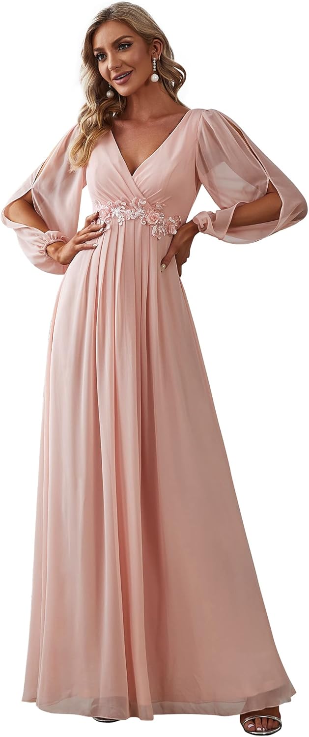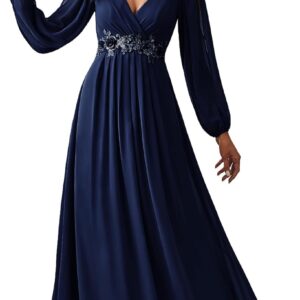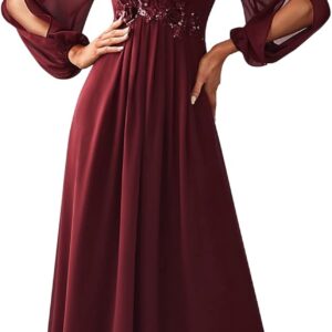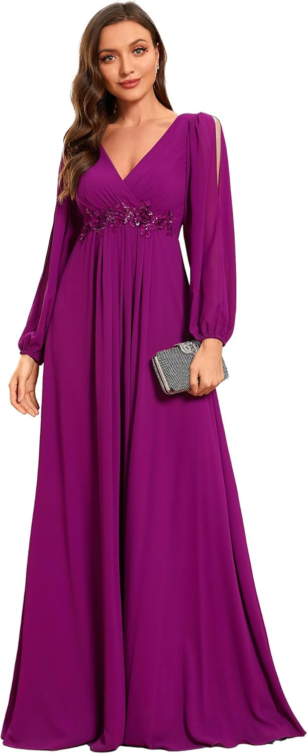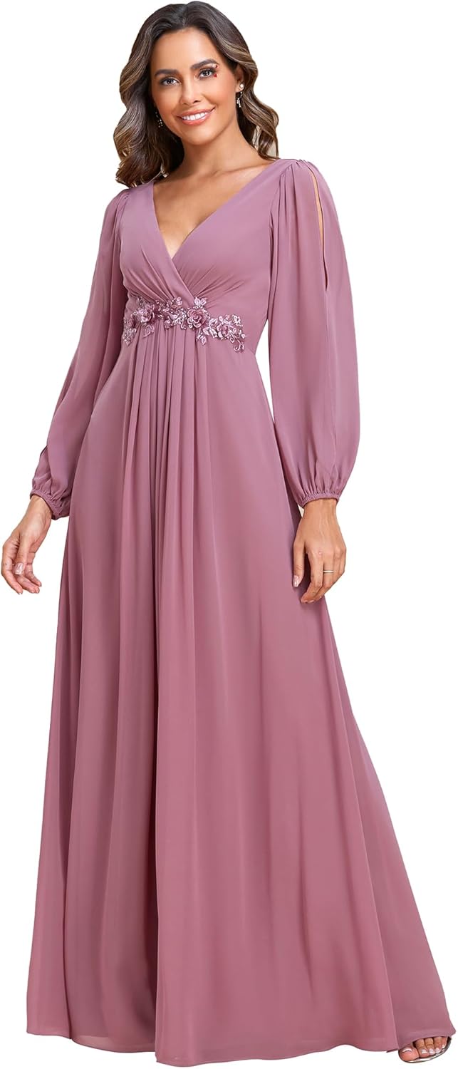 Ever-Pretty Women’s V Neck Long Lantern Sleeves Floor Length Ruched Chiffon A-Line Formal Evening Dress 00461