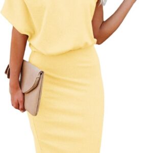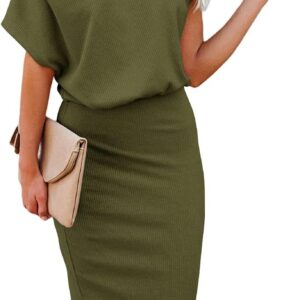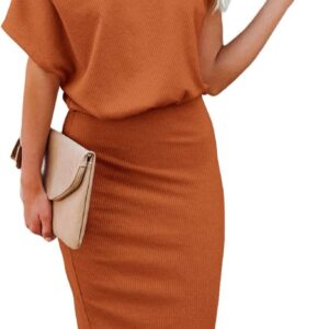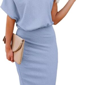 Women's Sexy Bodycon Dresses Ribbed Short Sleeve Bodycon Short Solid Pencil