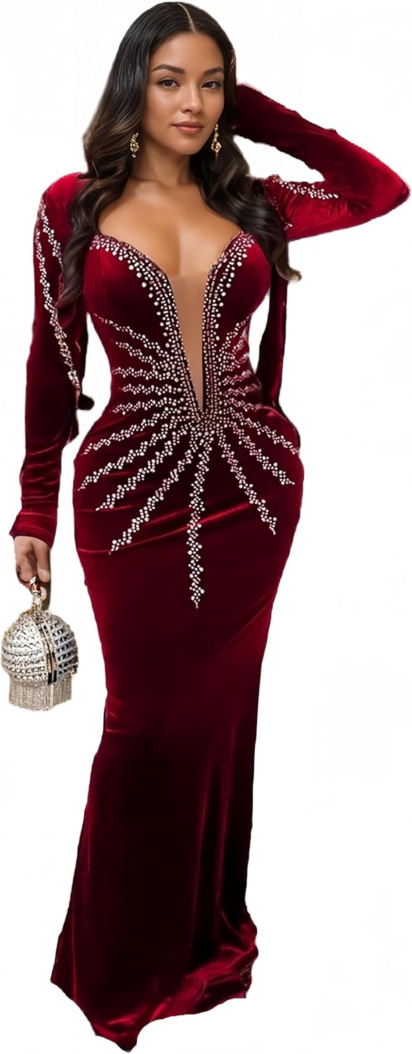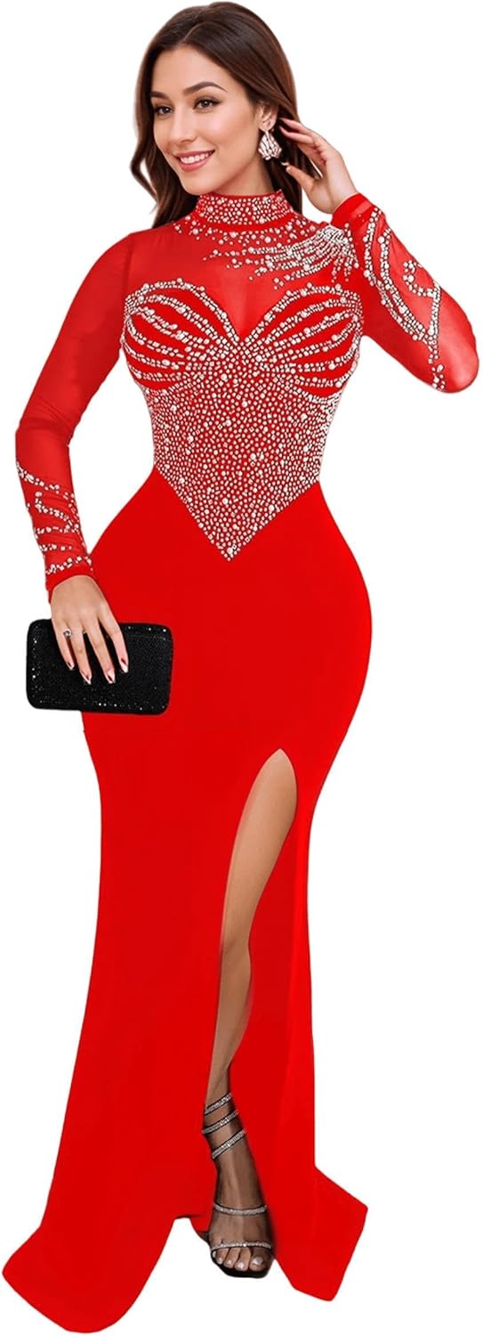 Figdaw Rhinestone Embellished Formal Gowns and Evening Dresses for Women 2025