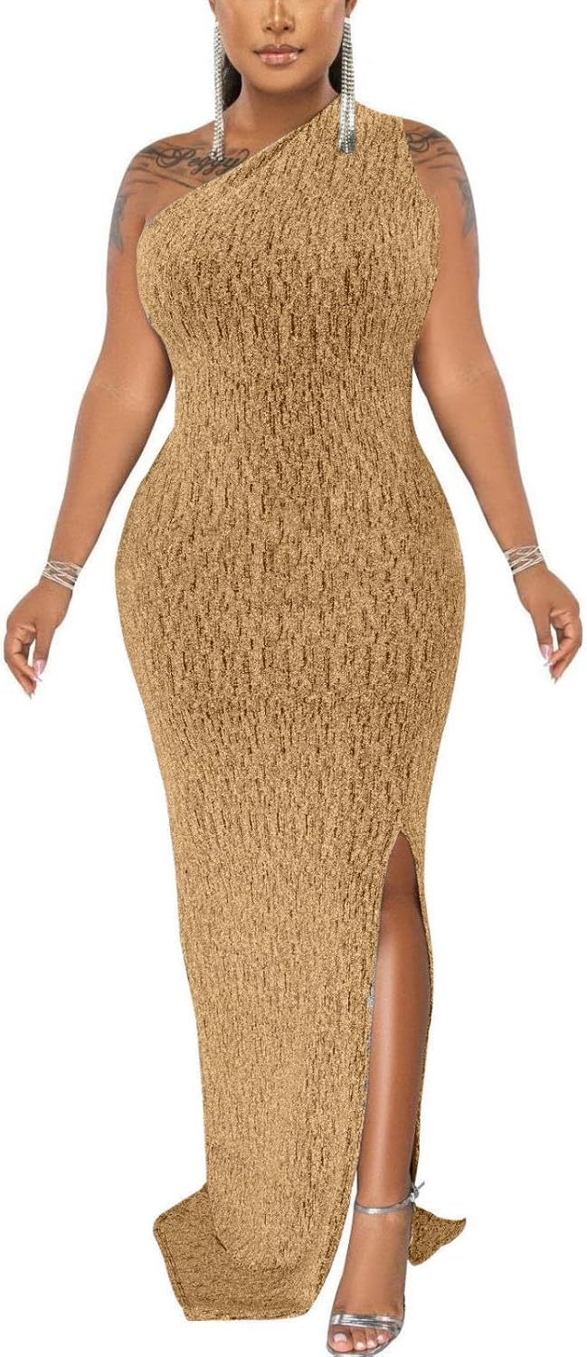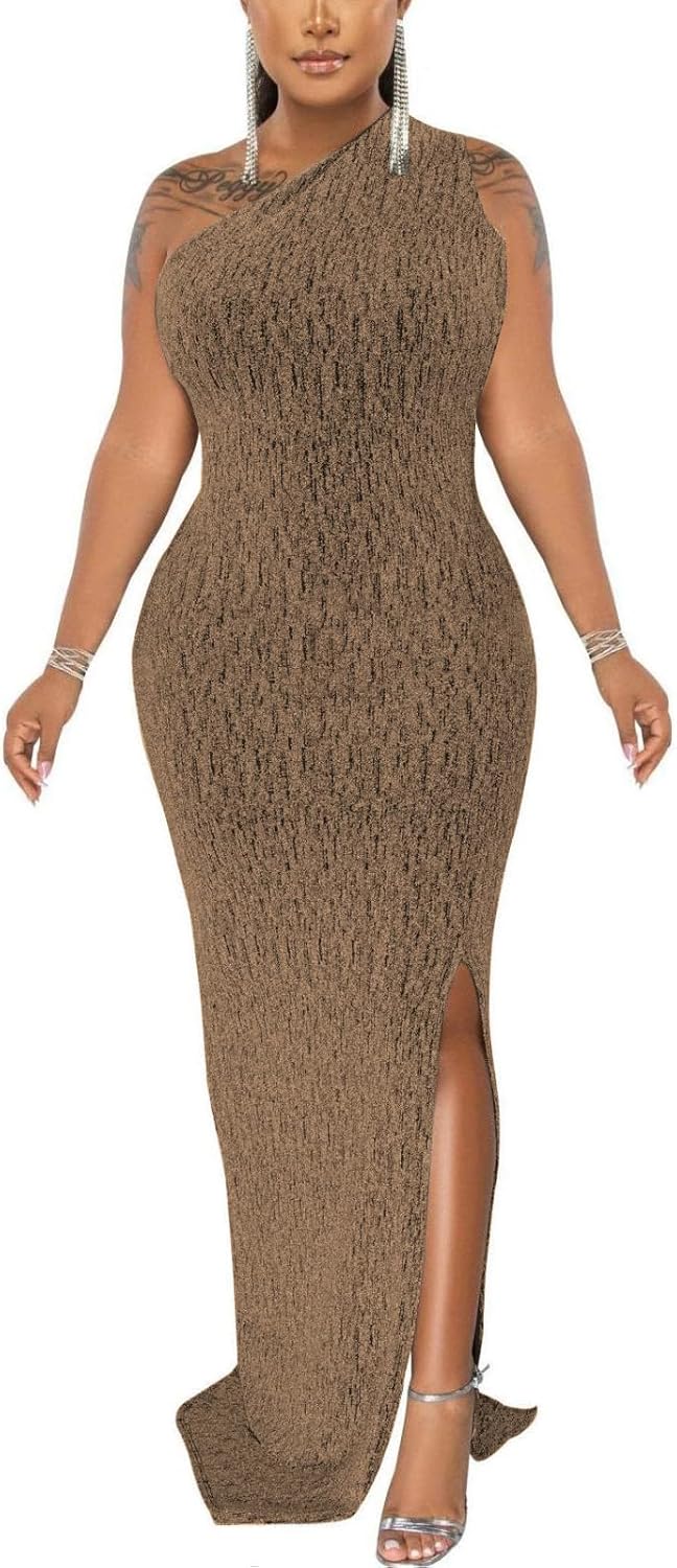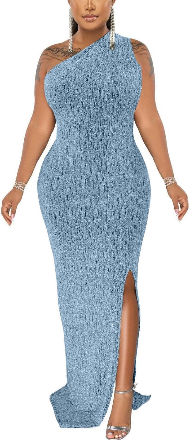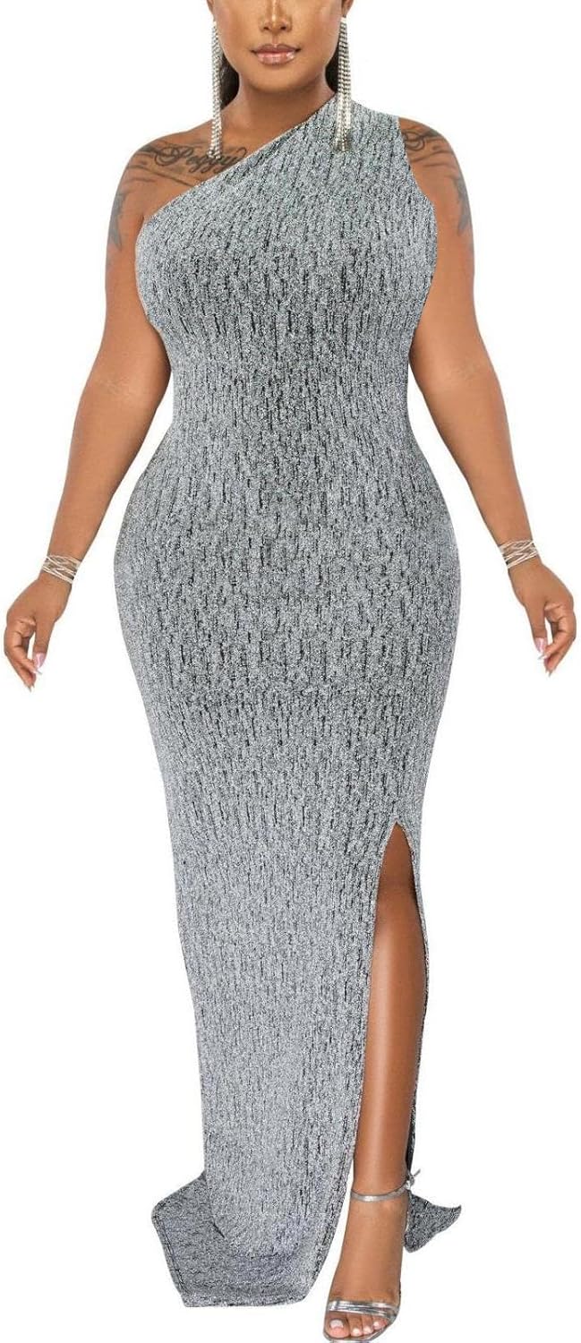 Formal Dress for Women Elegant Sparkly One Shoulder Sleeveless High Split Cocktail Party Prom Dresses