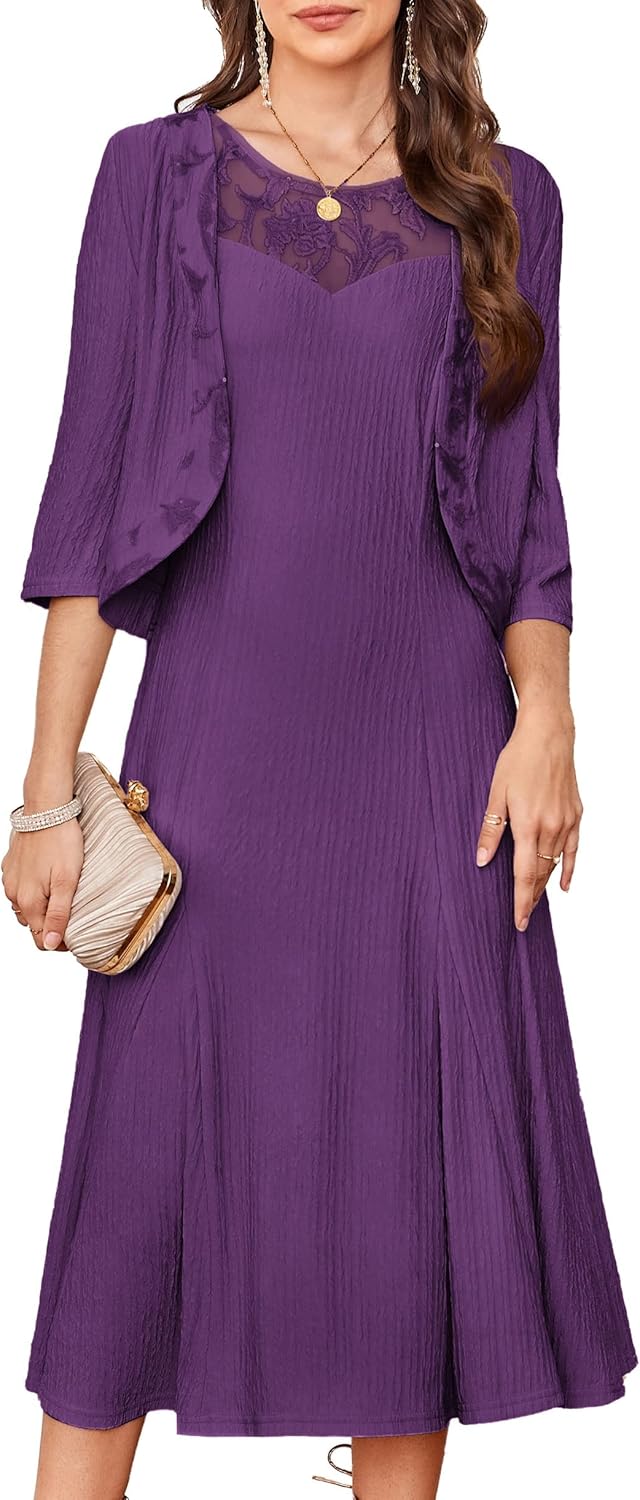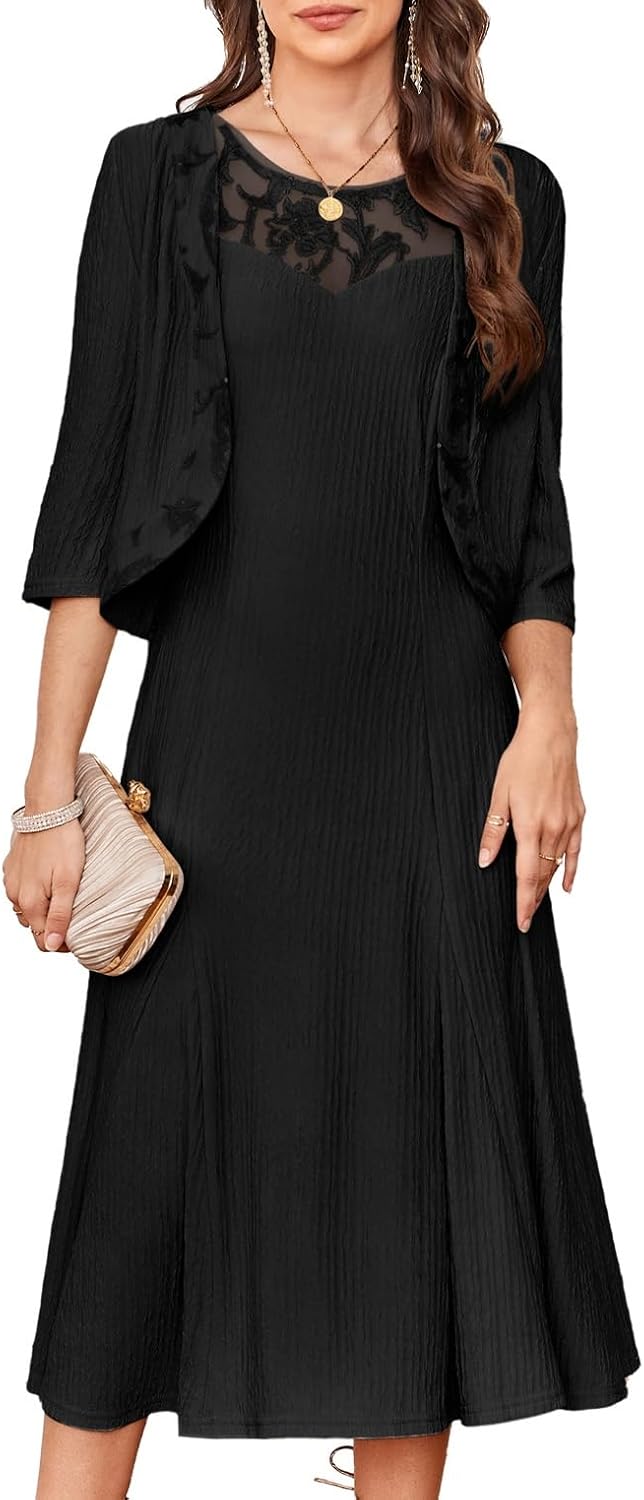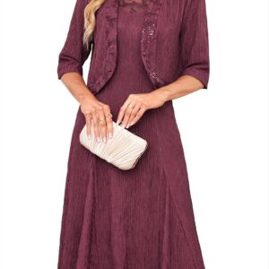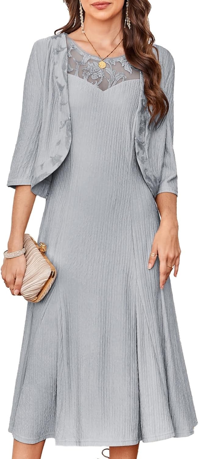GRACE KARIN Mother of The Bride Dress with 3\/4 Sleeves Cardigan Stretchy Lace 2 Pieces Wedding Guest Sequins Dresses