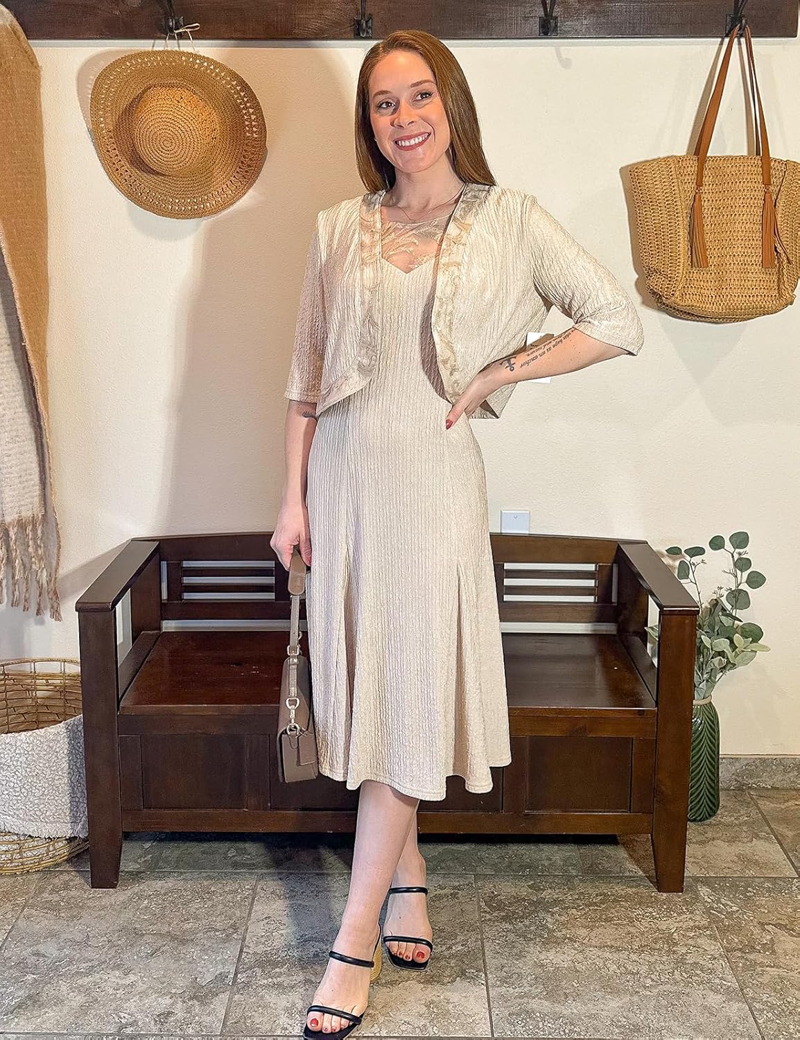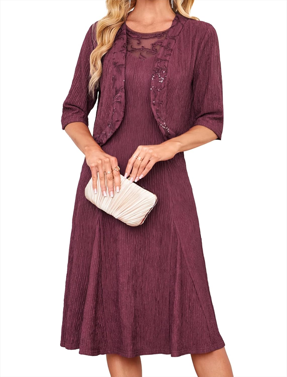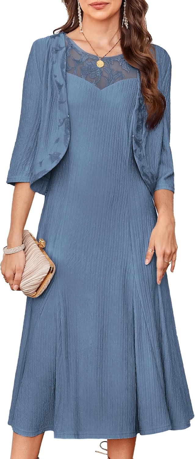 GRACE KARIN Mother of The Bride Dress with 3\/4 Sleeves Cardigan Stretchy Lace 2 Pieces Wedding Guest Sequins Dresses