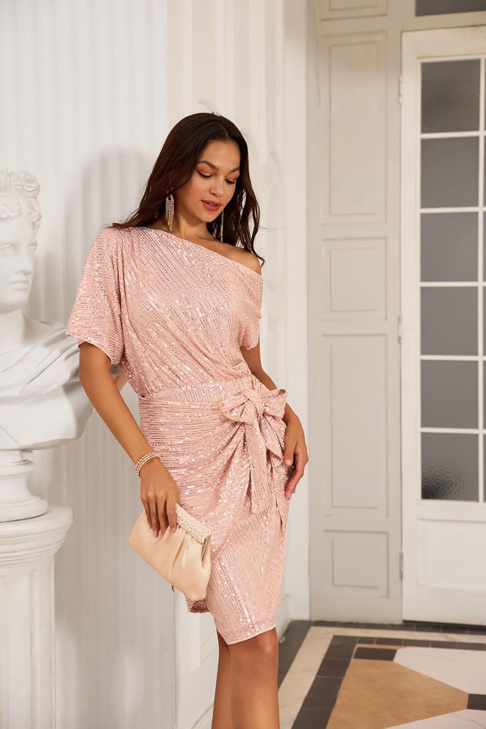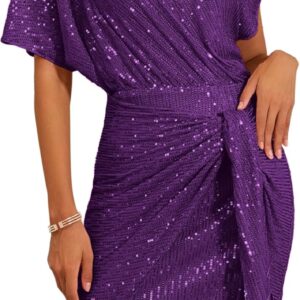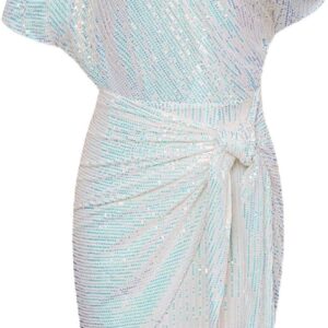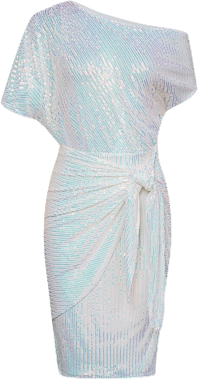 GRACE KARIN Women’s Sequin Sparkly Glitter Party Club Dress One Shoulder Ruched Cocktail Bodycon Dress