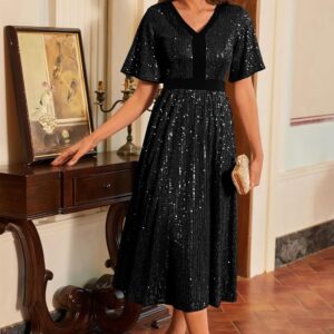GRACE KARIN Women’s Sequin V Neck Ruffle Sleeve Empire Waist Sparkly Glitter A Line Cocktail Formal Dresses