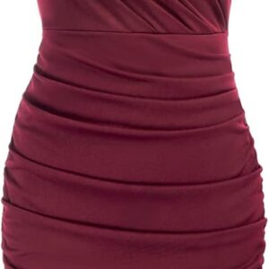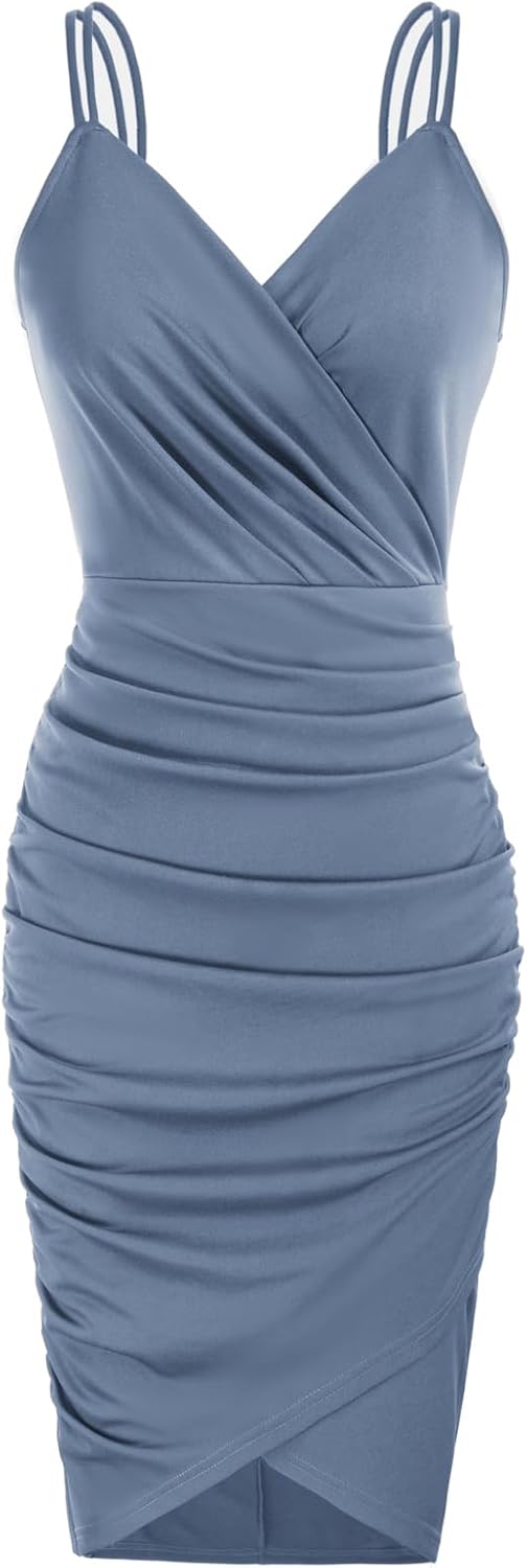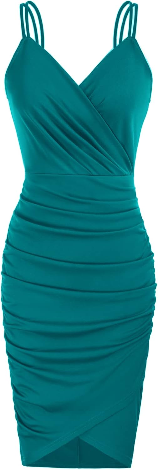GRACE KARIN Women’s Sexy Spaghetti Straps Cocktail Dresses for Wedding Guest Ruched V-Neck Bodycon Dress