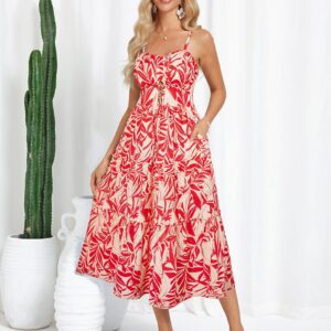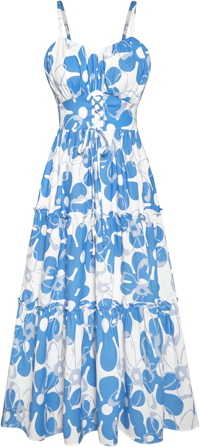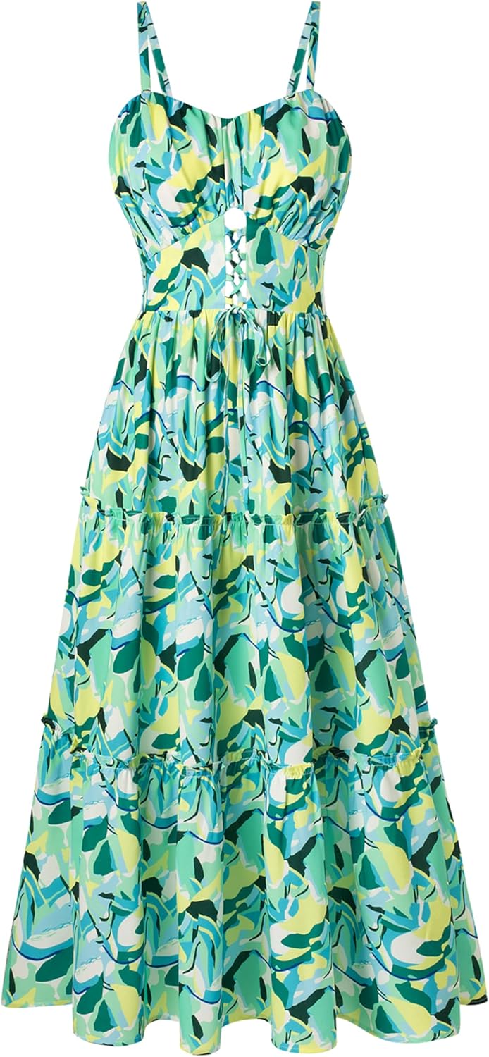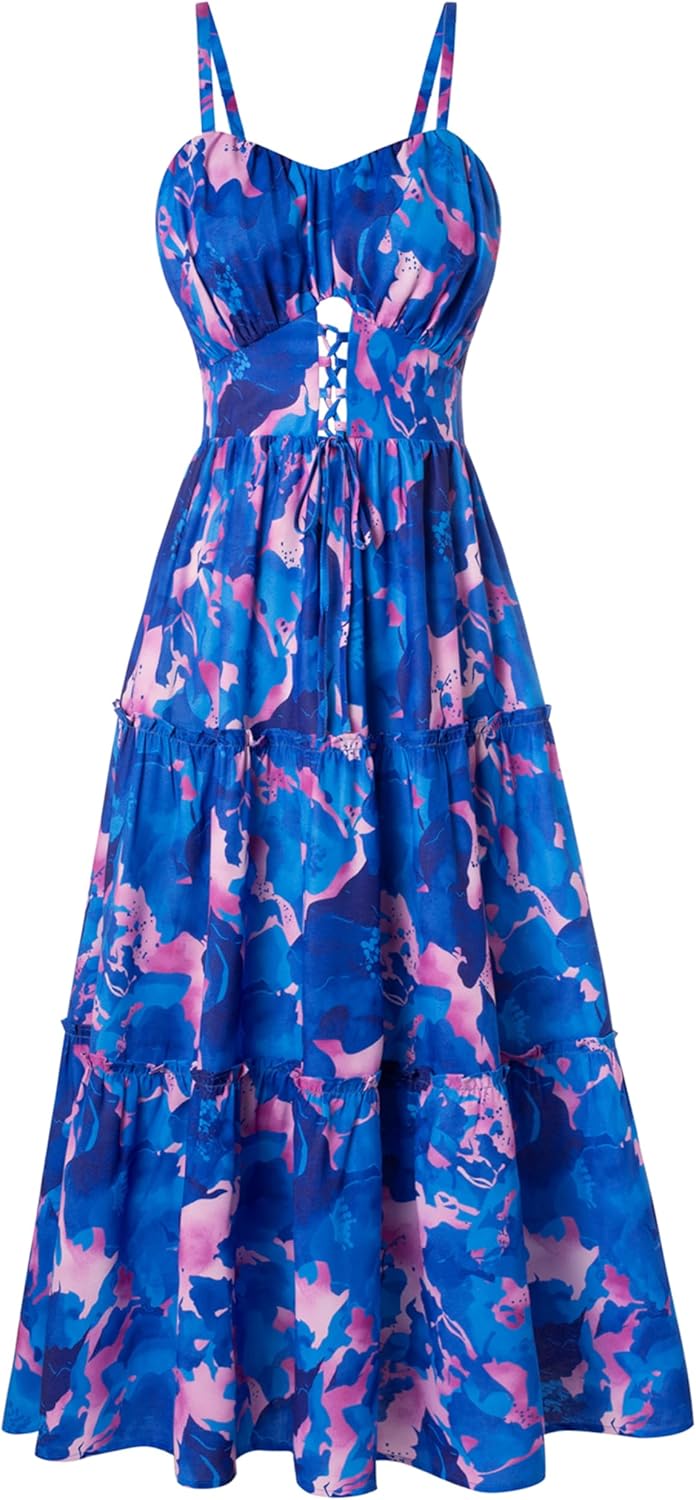 GRACE KARIN Women’s Summer Floral Dress 2025 Spaghetti Strap Smocked Tiered Casual Boho Maxi Long Sundress with Pockets