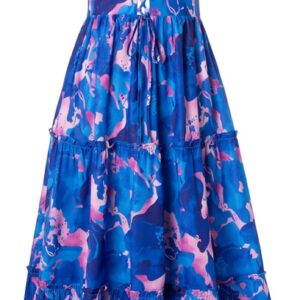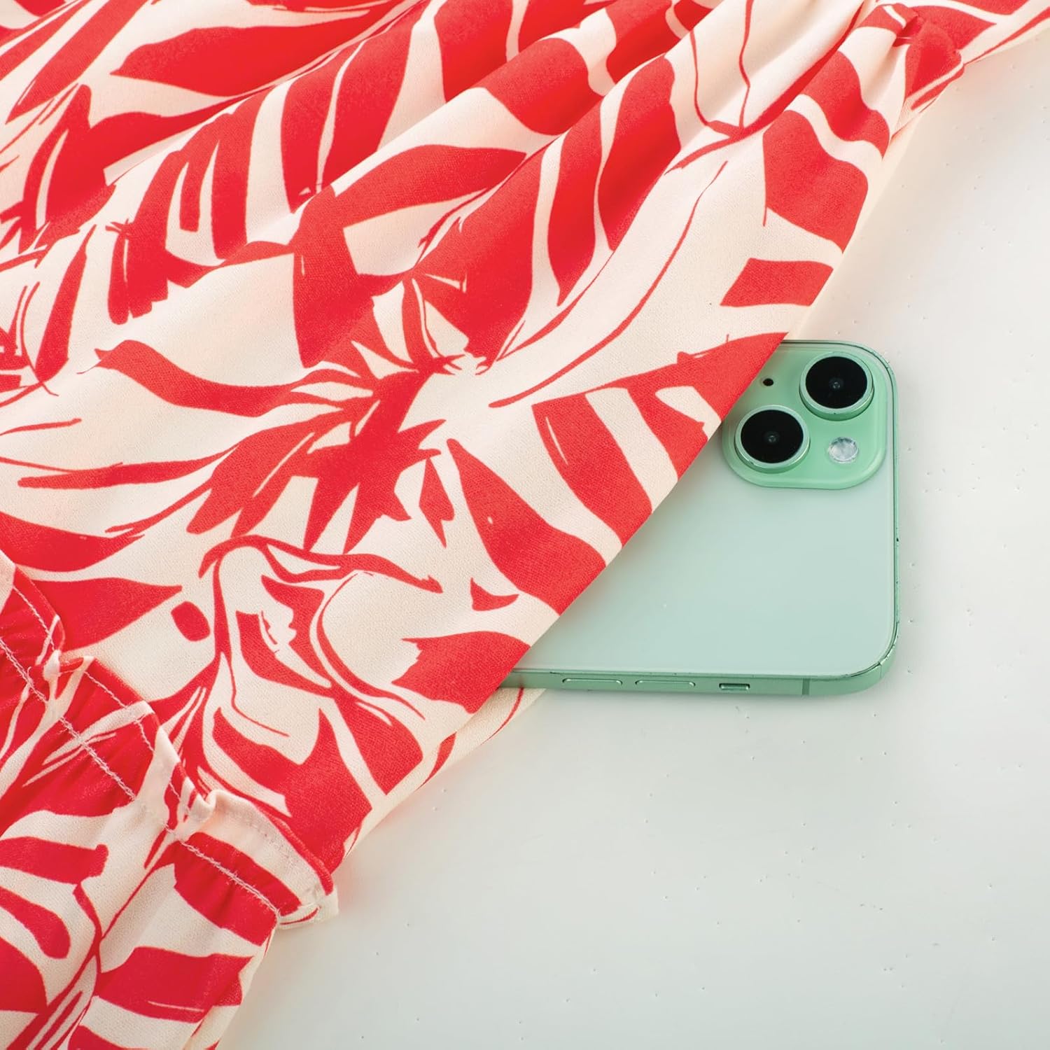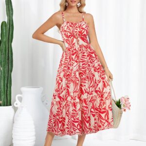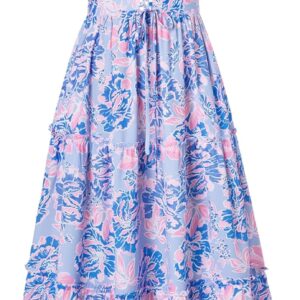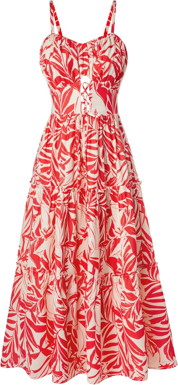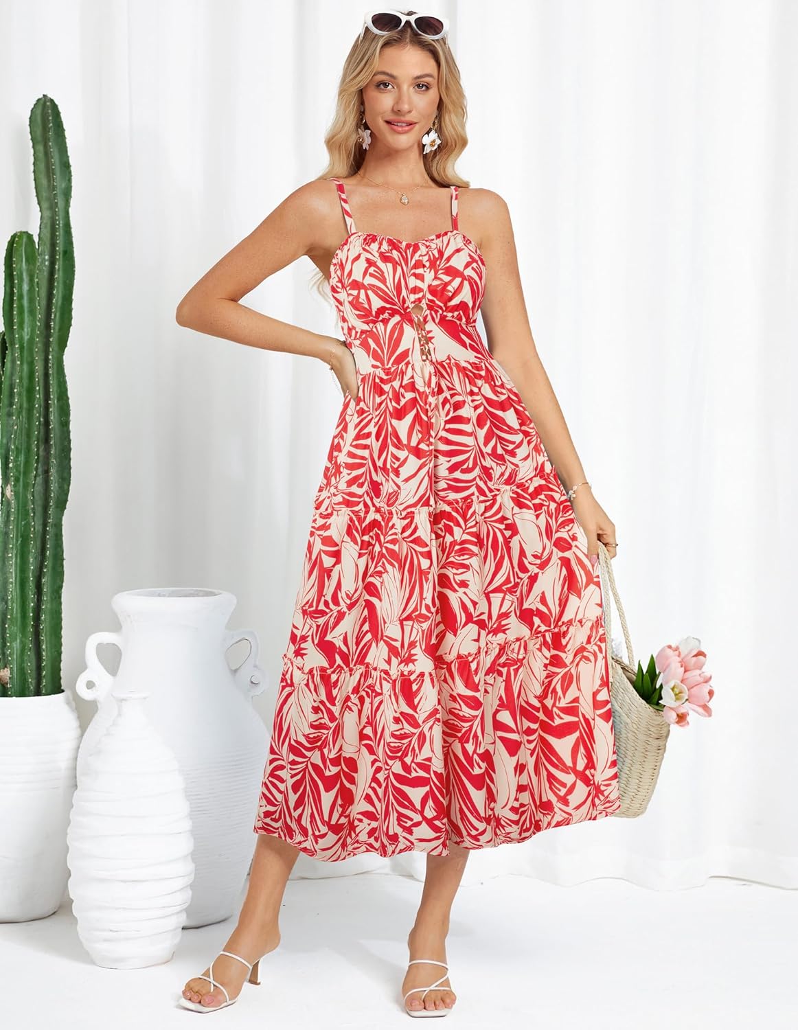 GRACE KARIN Women’s Summer Floral Dress 2025 Spaghetti Strap Smocked Tiered Casual Boho Maxi Long Sundress with Pockets