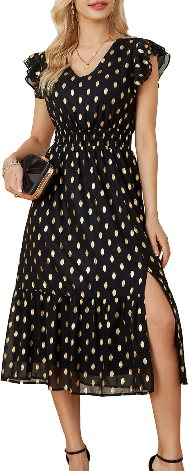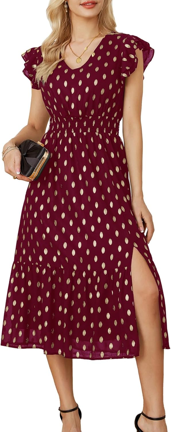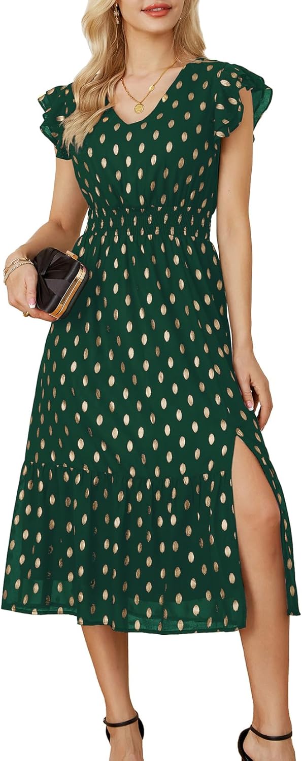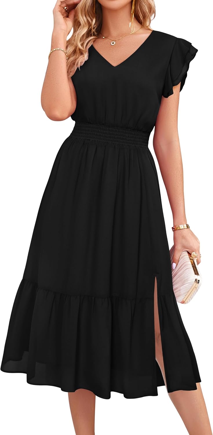 GRACE KARIN Women’s V Neck Ruffle Sleeve Summer Dress 2025 Split Flowy Tiered Midi Dress Wedding Guest Cocktail Dresses