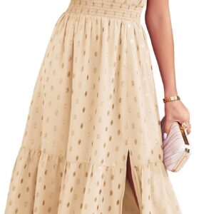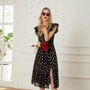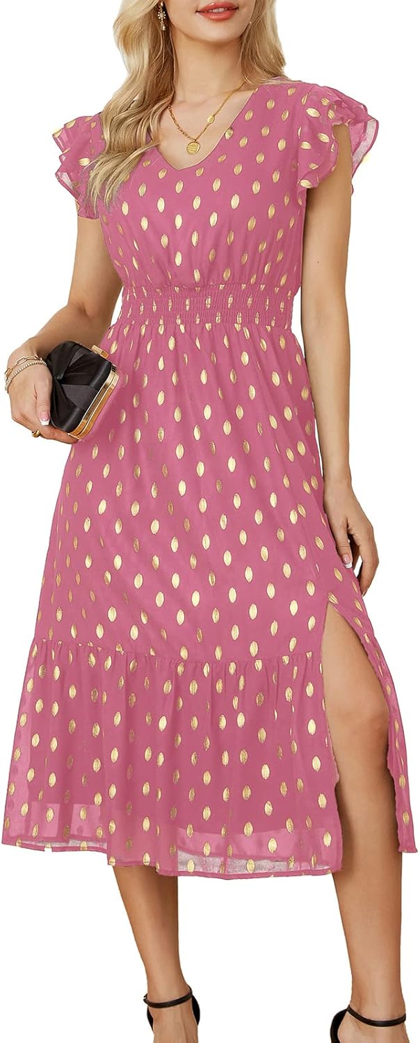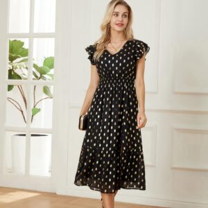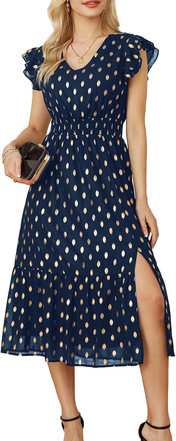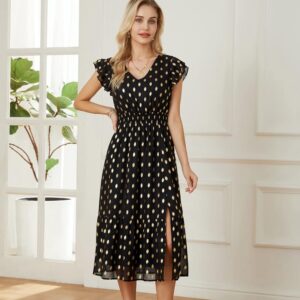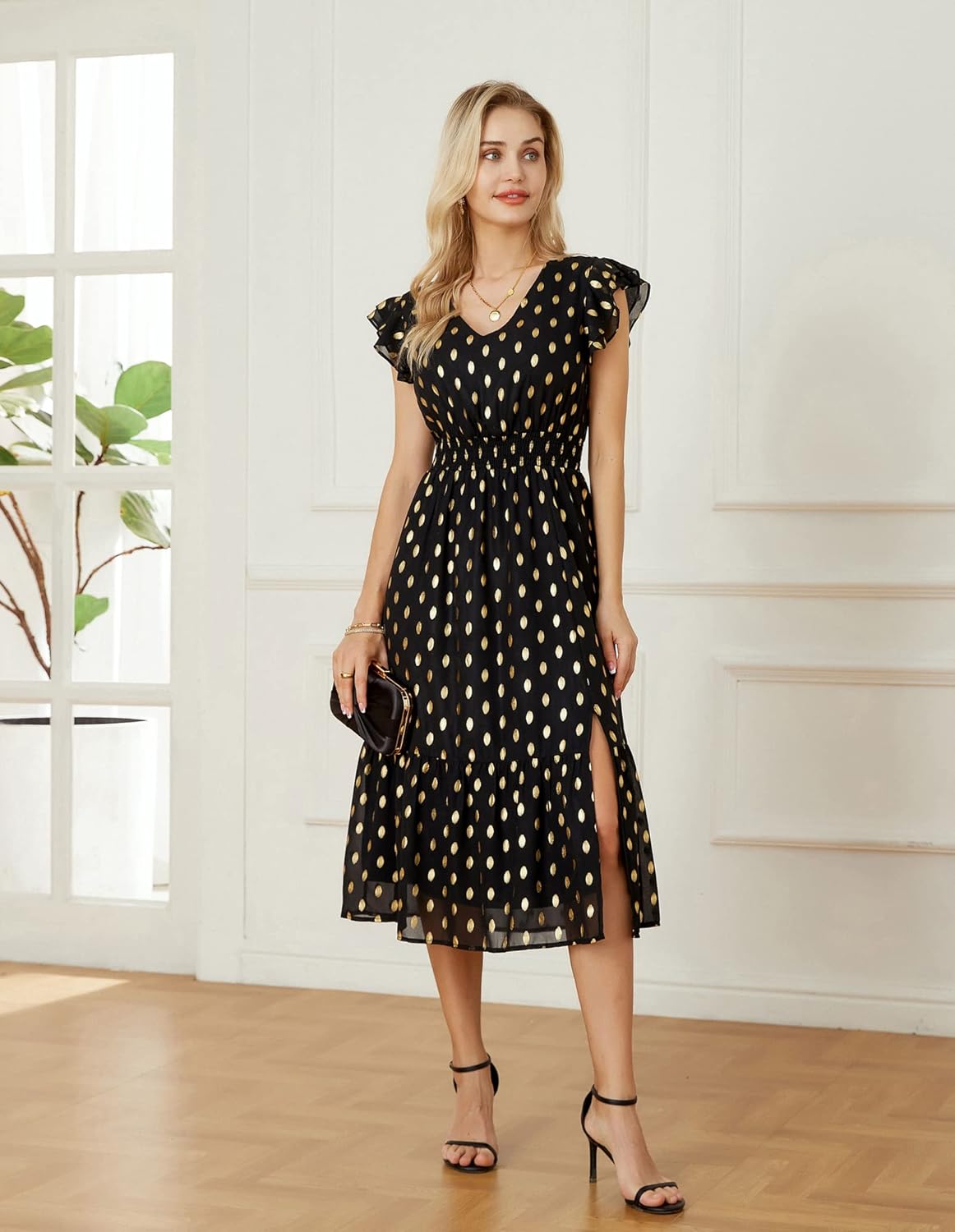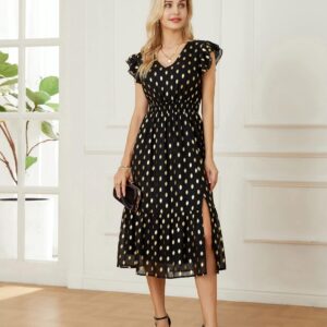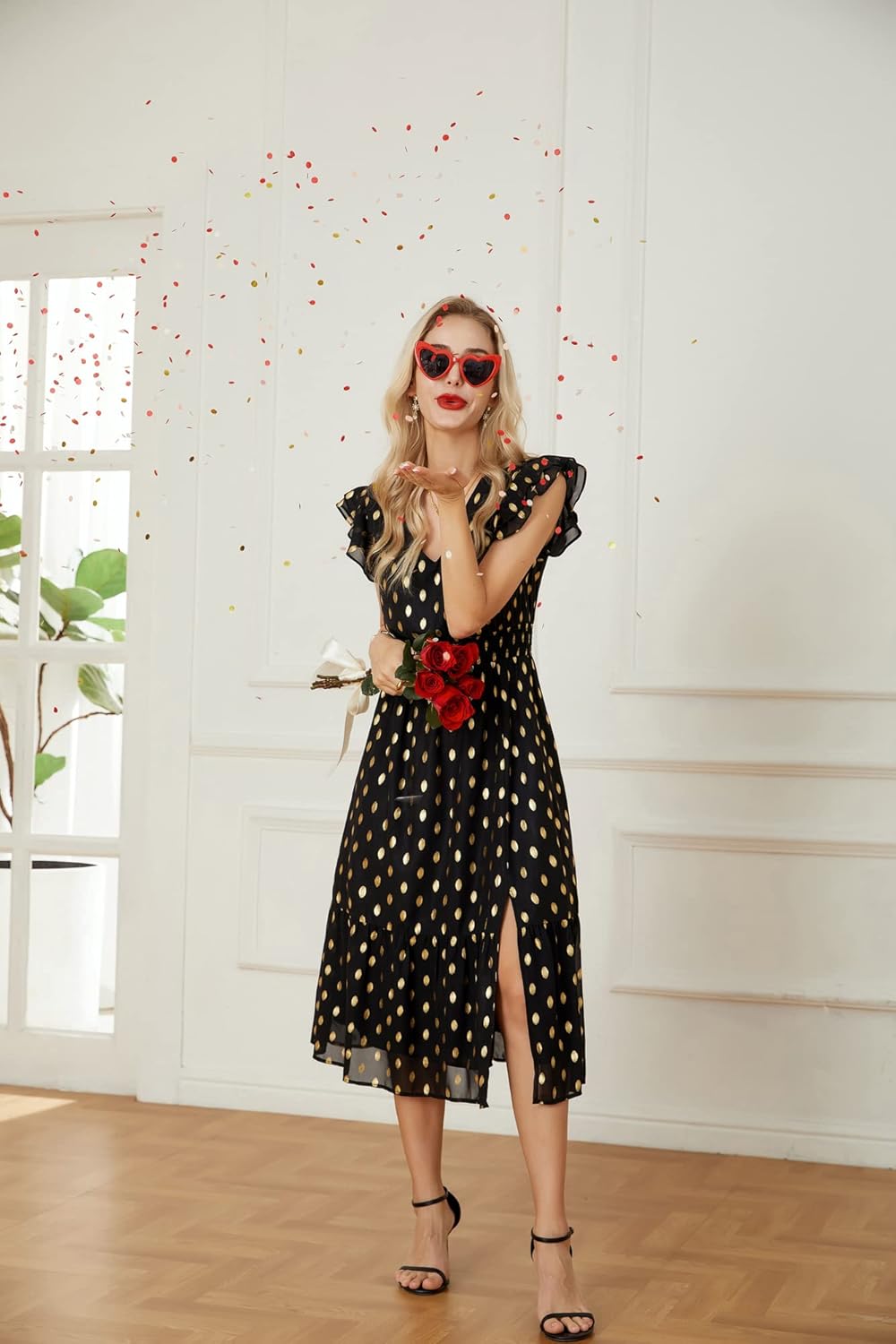 GRACE KARIN Women’s V Neck Ruffle Sleeve Summer Dress 2025 Split Flowy Tiered Midi Dress Wedding Guest Cocktail Dresses