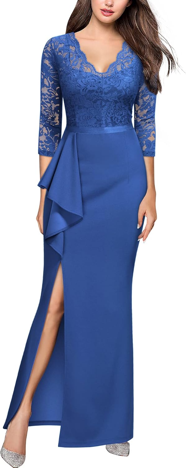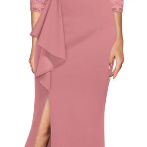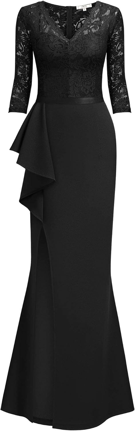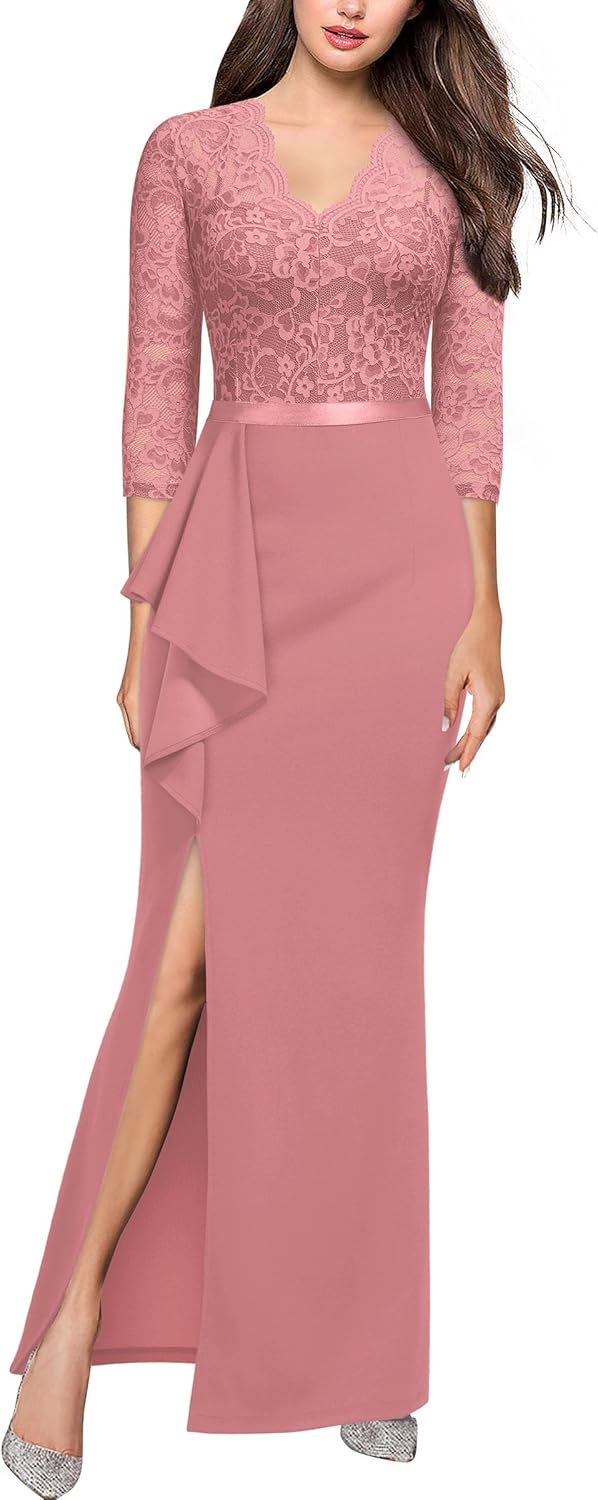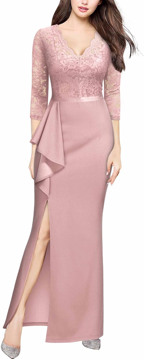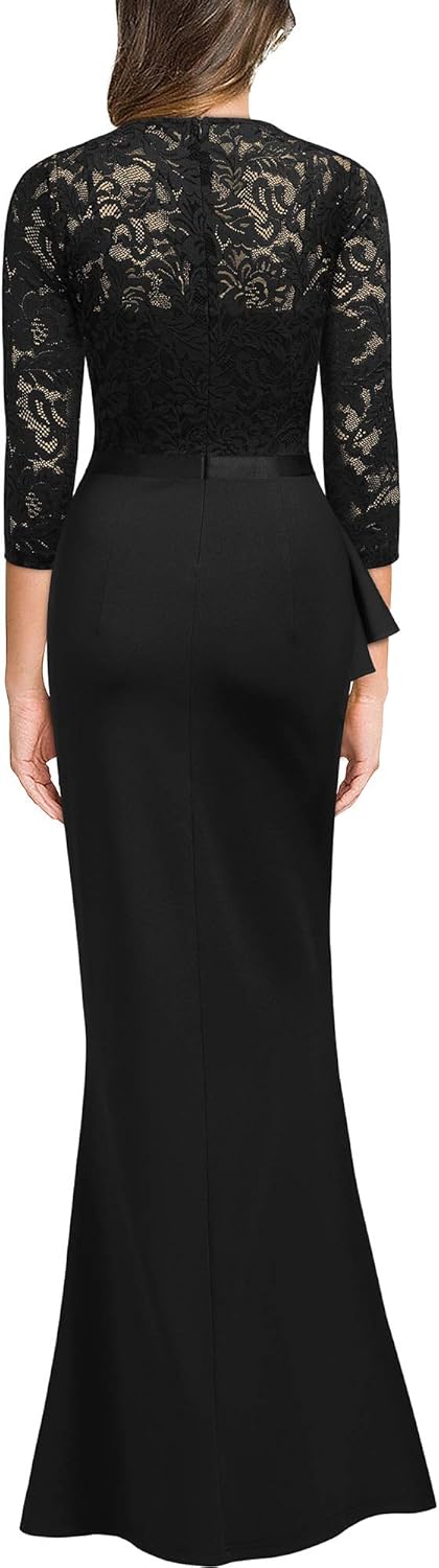 MISSMAY Women’s Vintage Floral Lace Ruffle Half Sleeve Evening Party Formal Long Dress