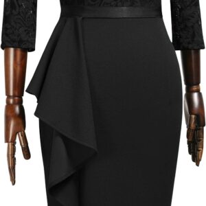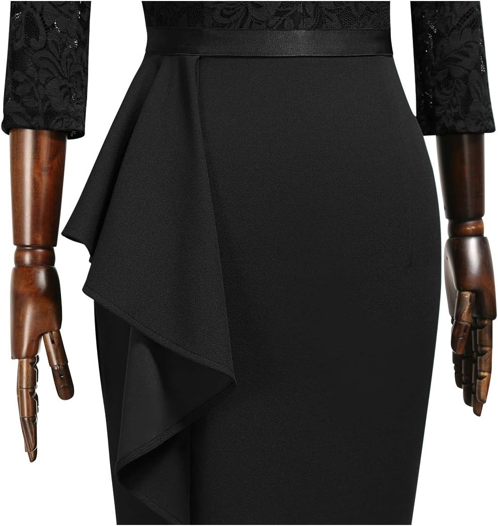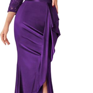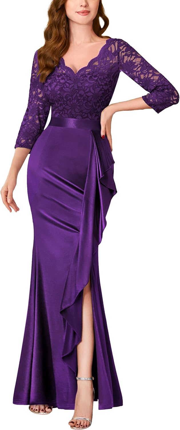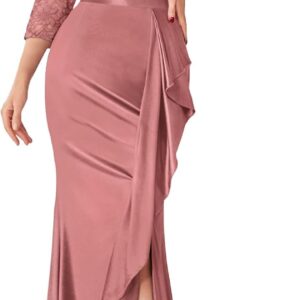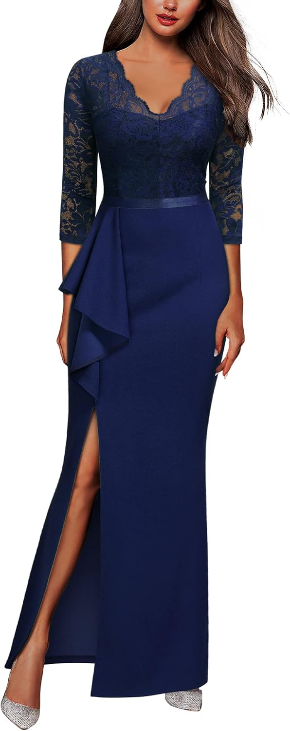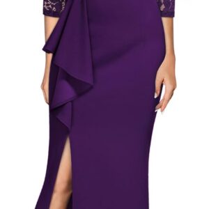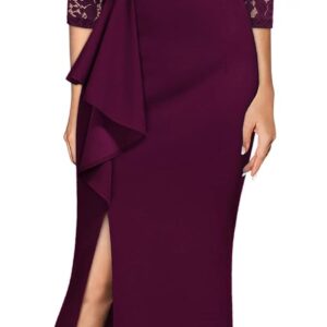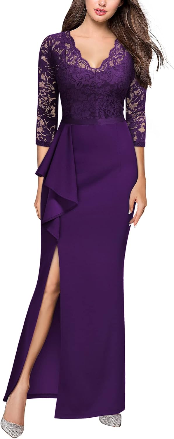MISSMAY Women’s Vintage Floral Lace Ruffle Half Sleeve Evening Party Formal Long Dress
