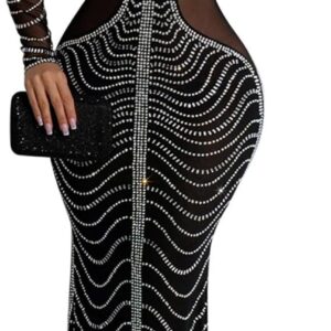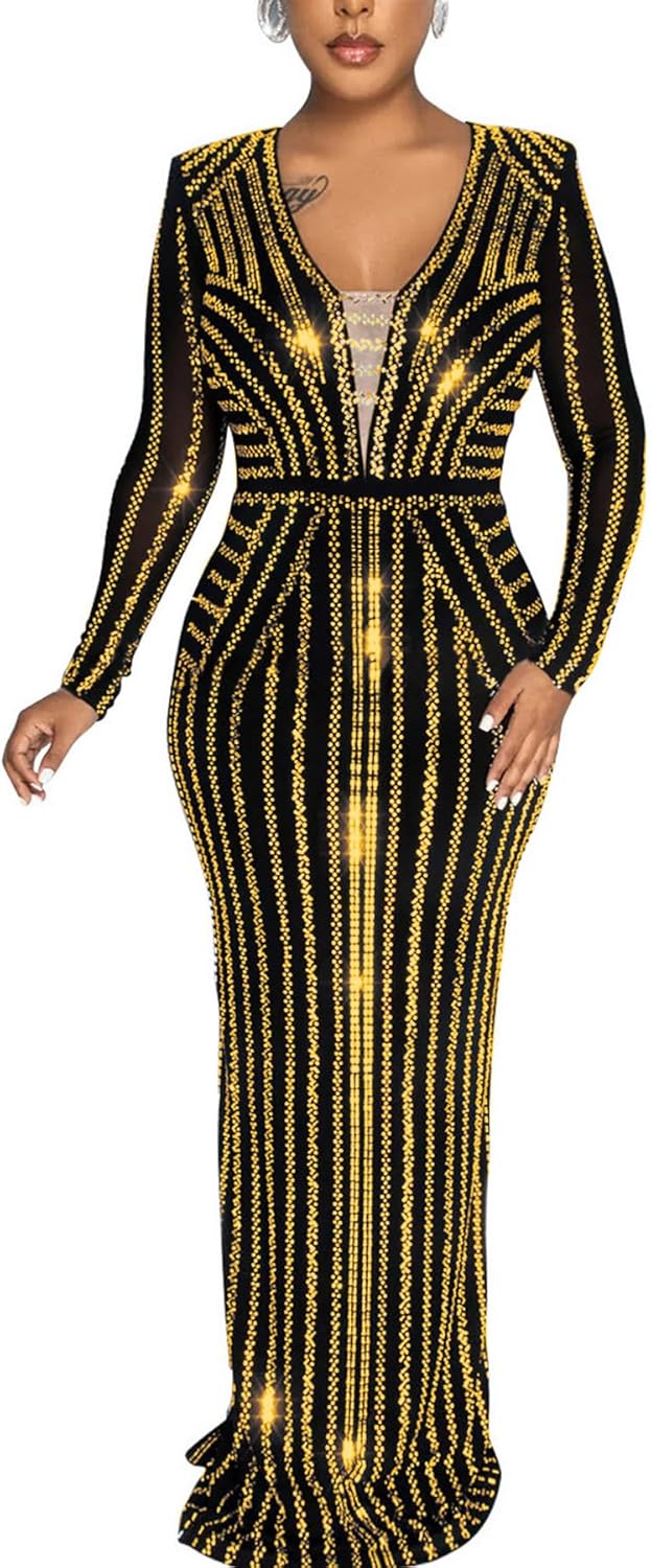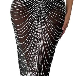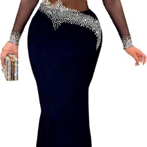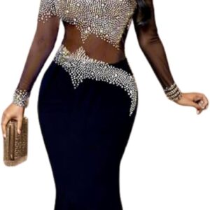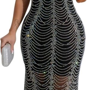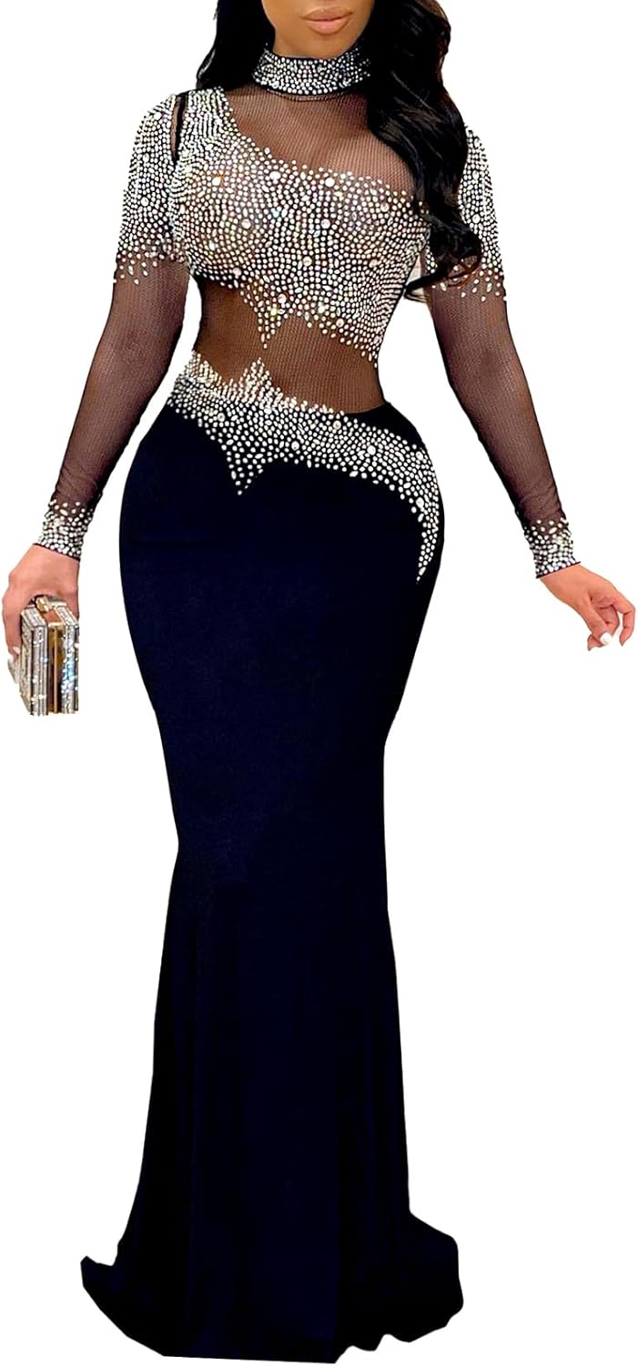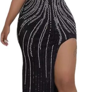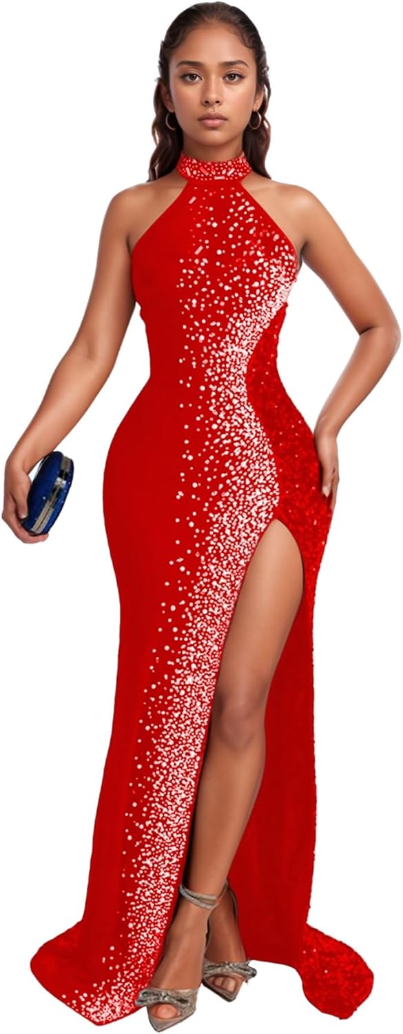 Nagfar Women's Rhinestone Sexy Dress, Halter Slit Long Dresses Birthday Party Club Night Gown