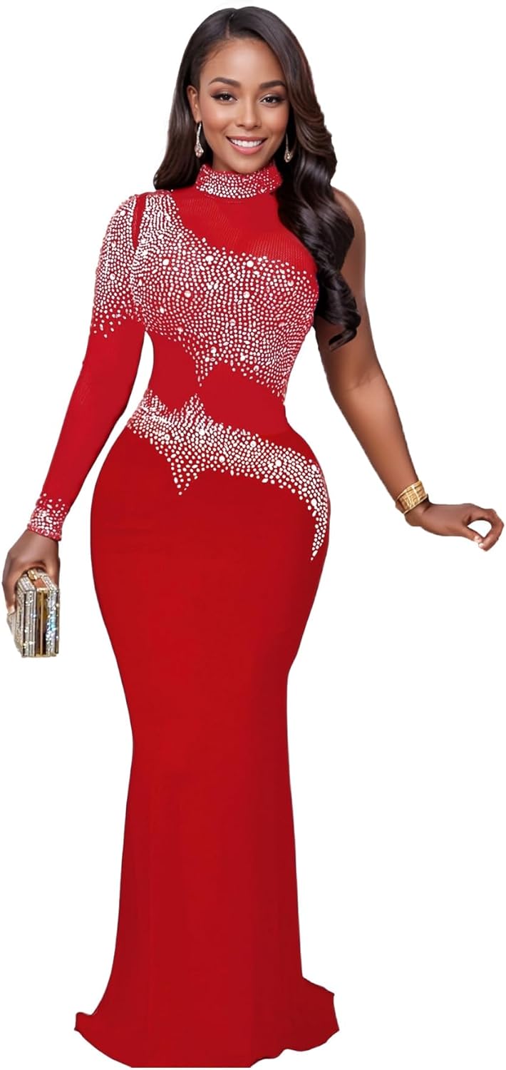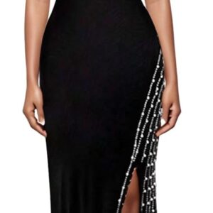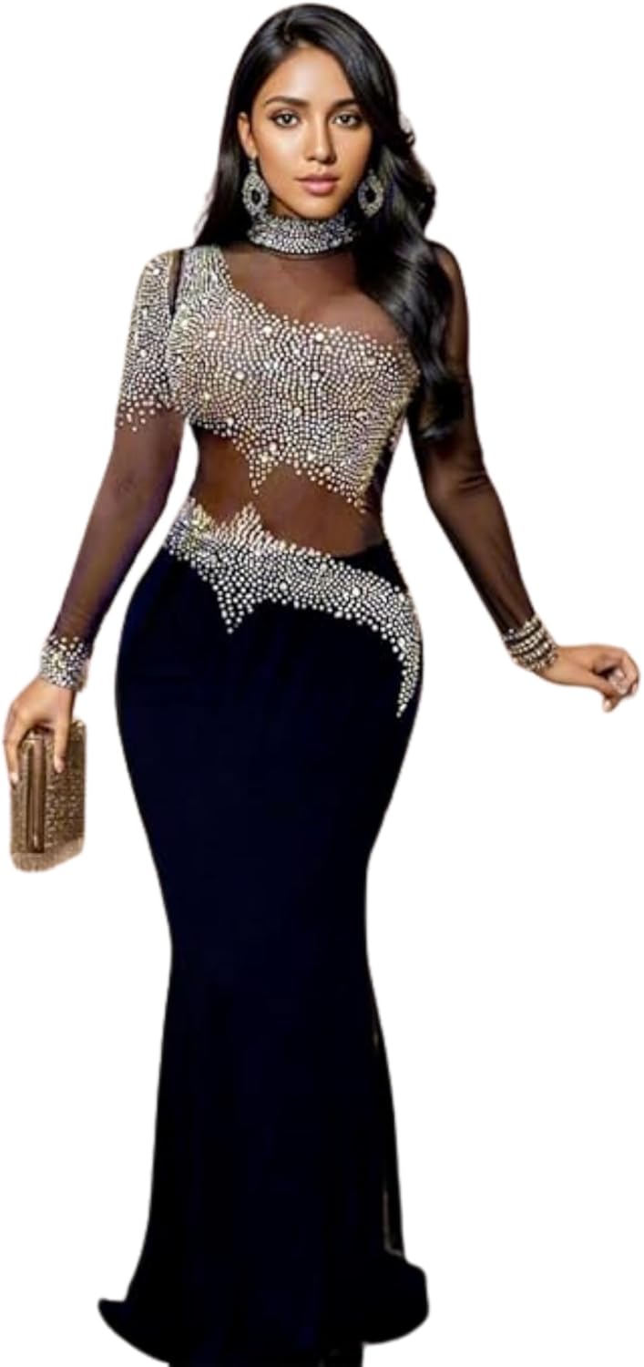 Sparkly Rhinestone Embellished Maxi Dress with Thigh Slit Long Evening Gown Dresses
