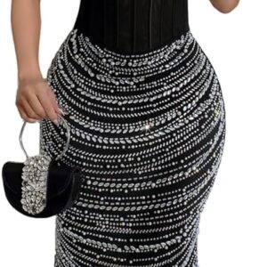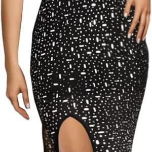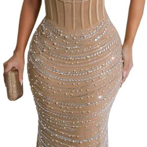PORRCEY Women Sexy Rhinestone Dresses Party Club Night Dress Birthday Dress