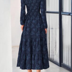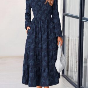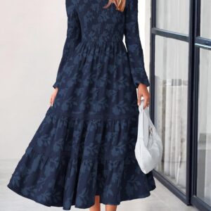 PRETTYGARDEN Long Sleeve Dress for Women 2025 Fall Elegant Modest Floral Boho Smocked Flowy Wedding Guest Midi Dresses