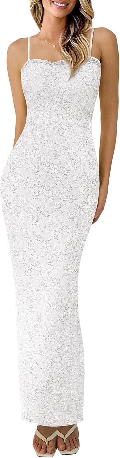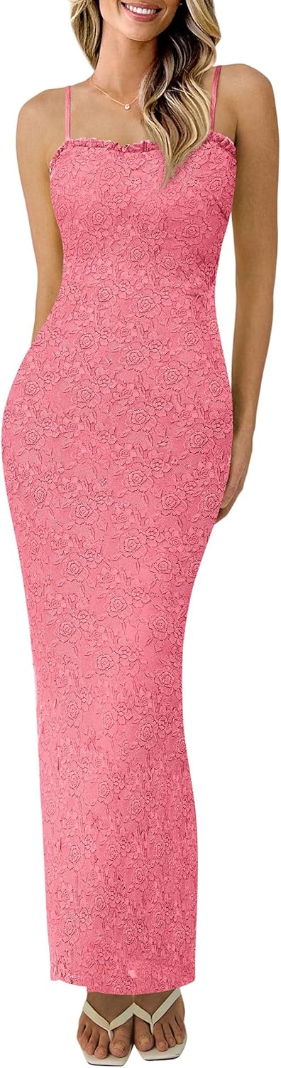 PRETTYGARDEN Summer Dresses for Women 2025 Lace Floral Bodycon Semi Formal Party Wedding Guest Boho Maxi Dress