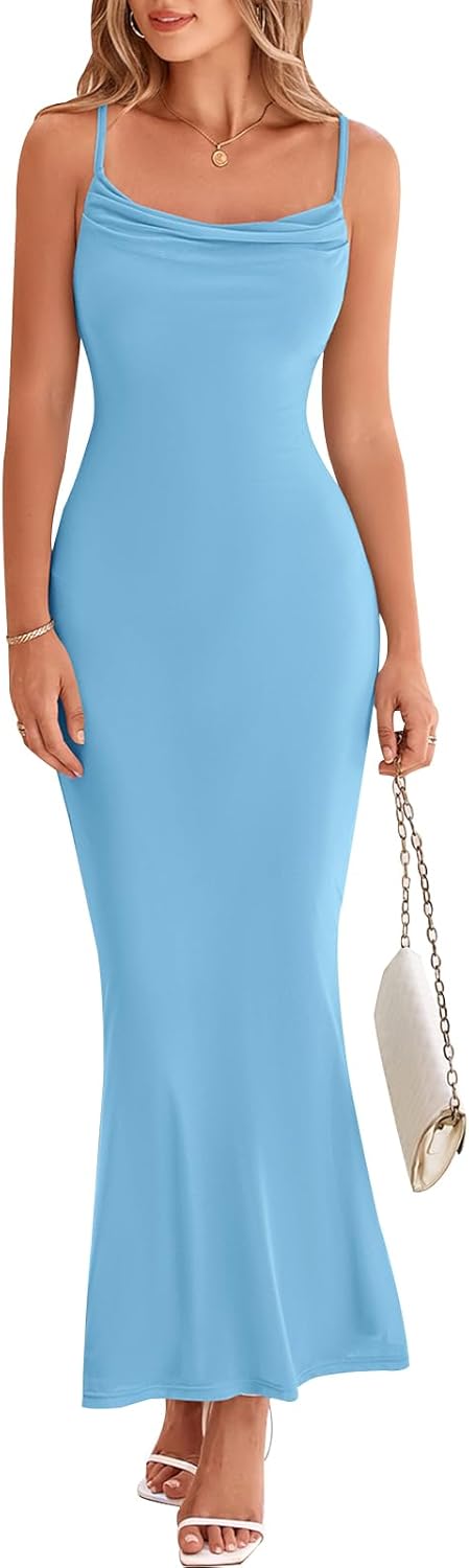 PRETTYGARDEN Women’s 2025 Summer Maxi Dress Spaghetti Strap Mesh Slip Bodycon Dress Cowl Neck Cocktail Party Long Dresses