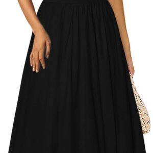PRETTYGARDEN Womens Summer Off Shoulder Sleeveless Midi Dress Cocktail A Line Flowy Wedding Guest Dresses with Pockets