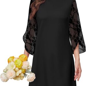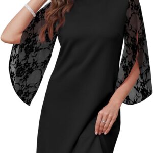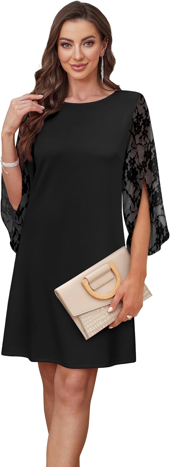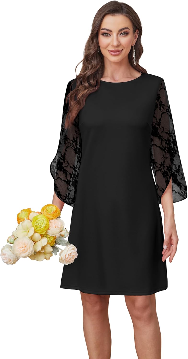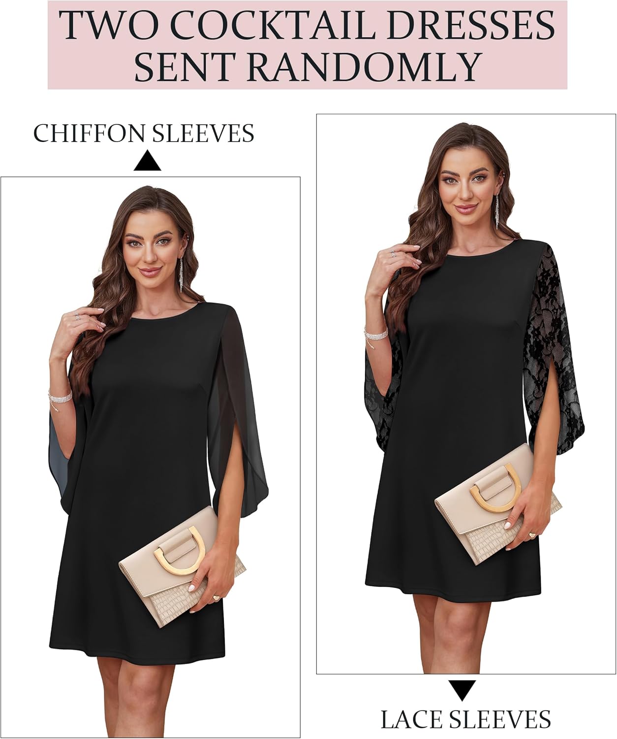 RUMIA Womens Cocktail Dresses Chiffon Sleeves or Lace Sleeves Black