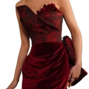SIDUFHAOPKLL Toasting Spring Vintage Wine Red Rose Wedding Evening Dress Ladies