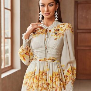Features—Crew Neck/High Waist/Ruffle Sleeve/Tiered Hem/Floral Print