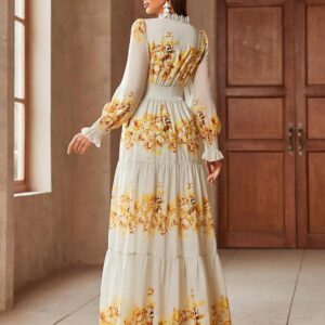 Womens Dresses Simple Printed Elegant Long Sleeve Tiered Ruffle Party Maxi Dress