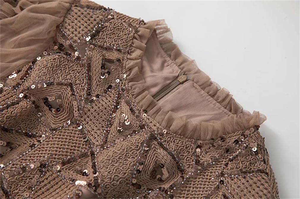 Women’s Autumn and Winter Ball Gown Dress Stand Collar Lantern Sleeved Sequins Ruffles Slim Evening Dresses