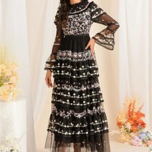 Women’s Embroidered Sequin Long Dress Holiday Party Evening Gown Elegant Dress(XX-L) Multi